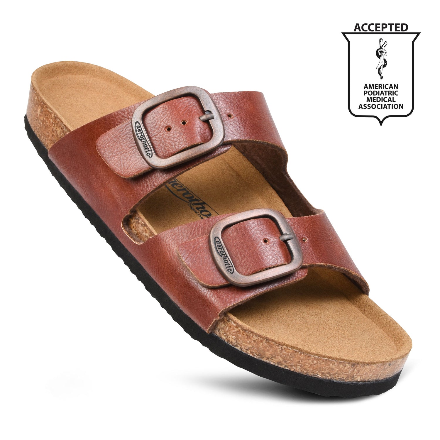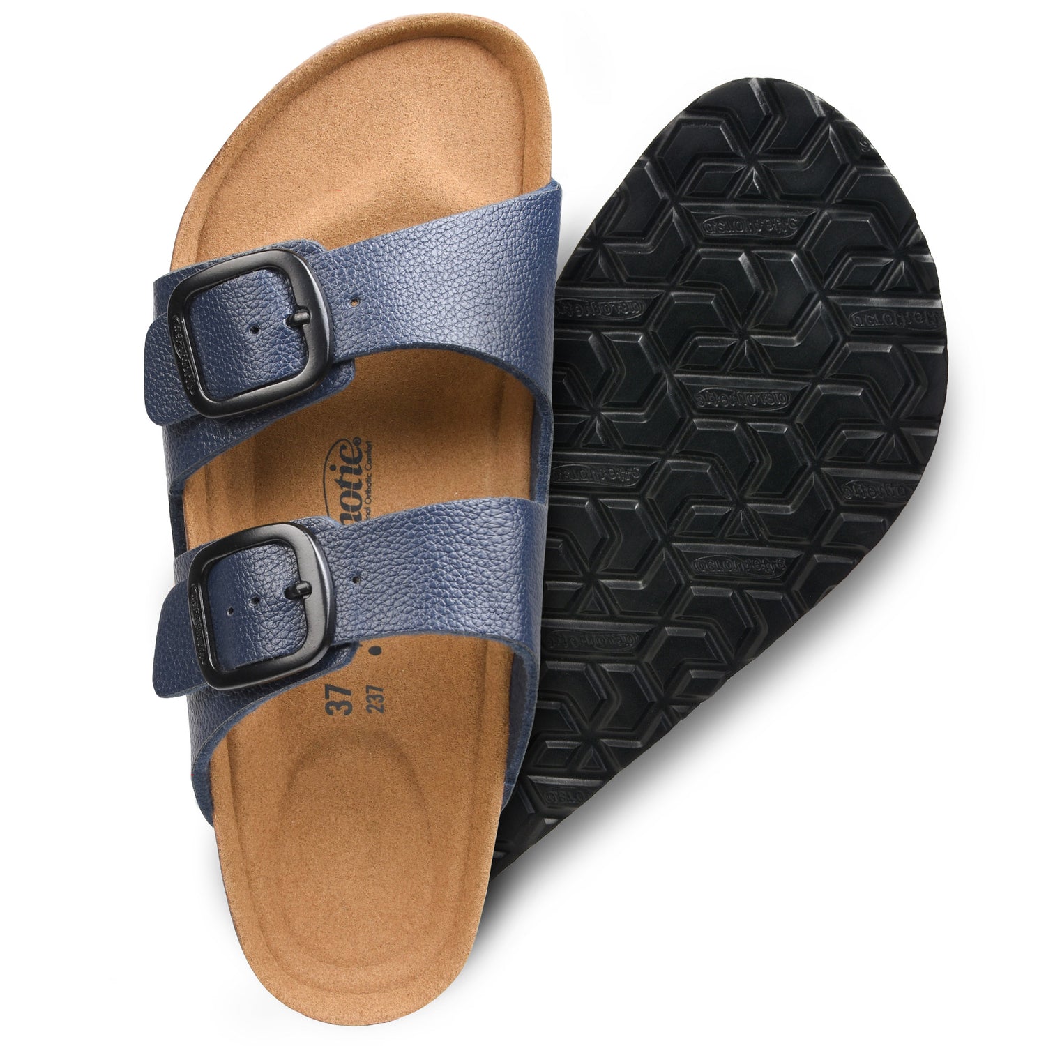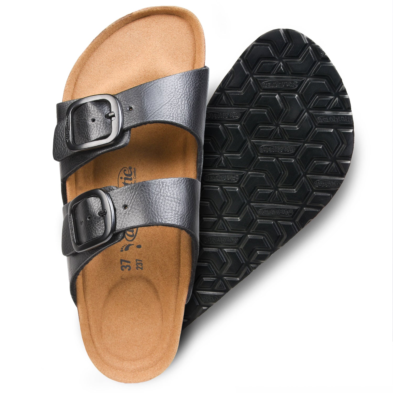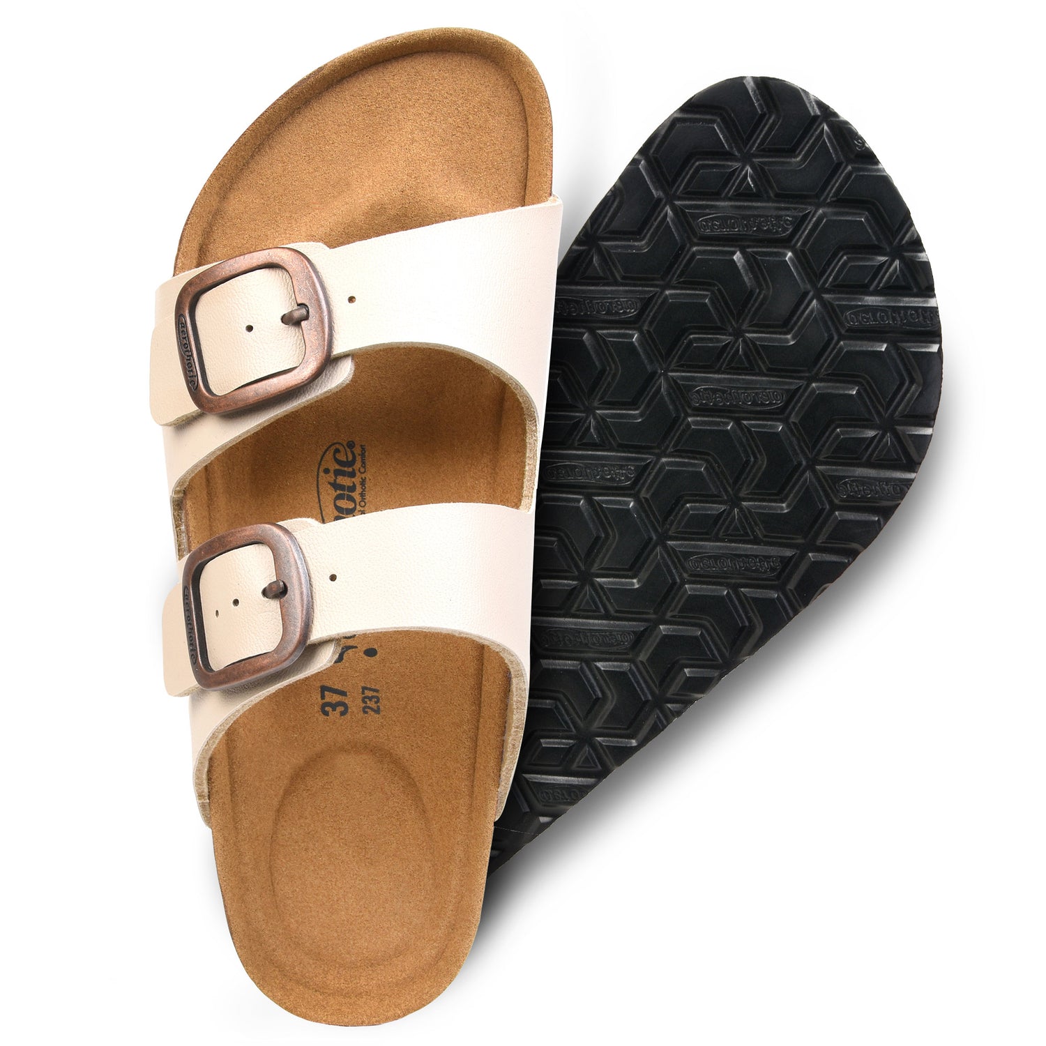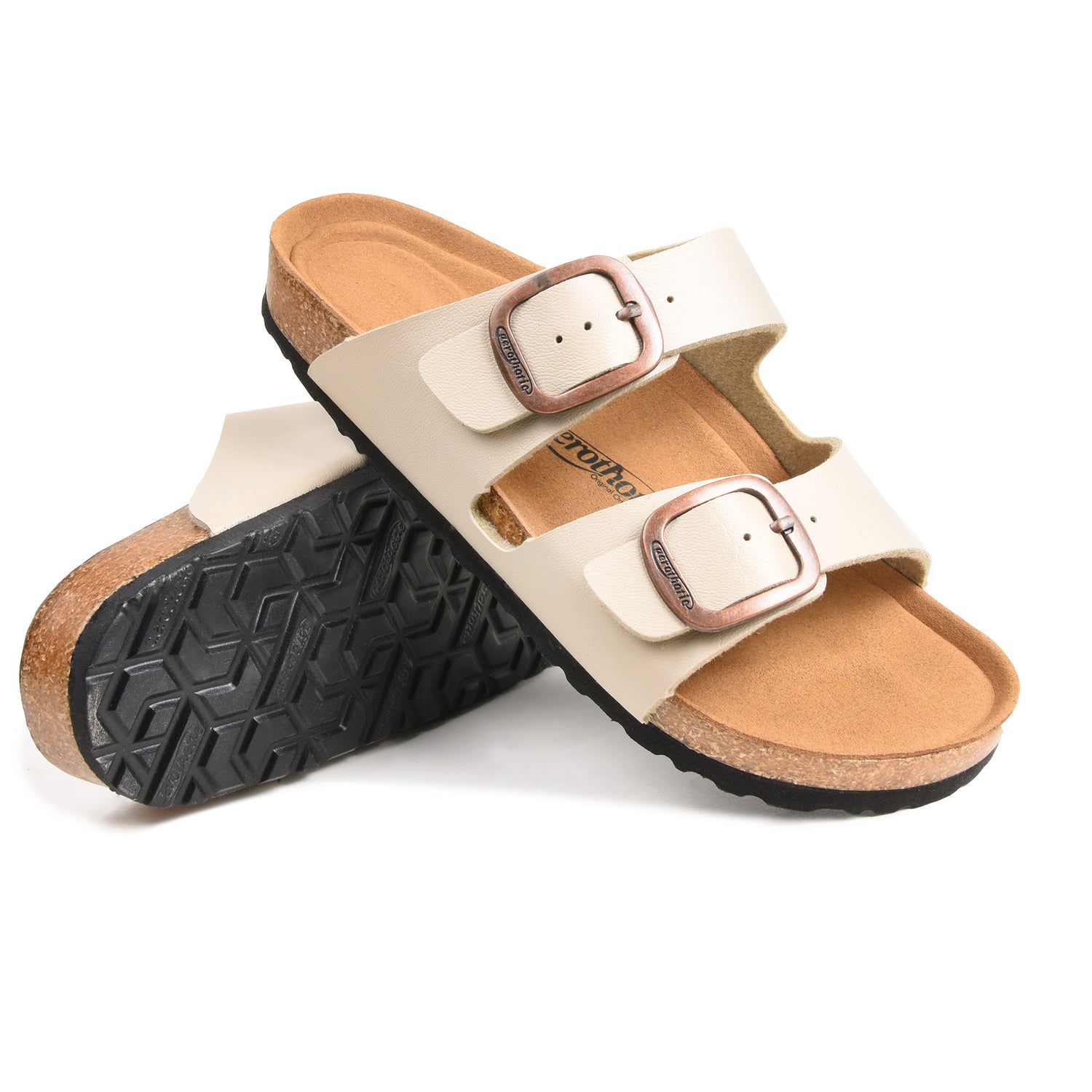 We heard you calling for convenient luxury, and here you go. Arete (PU1107) dual strap sandals are our ultimate find of the year to satisfy your style and comfort cravings. Unisex sandals with arch support are reliable to pick for a day out with your friends or off-trail walking. The uniquely formed cork footbed offers a stable fitting to every foot and fills the arch cavity while you wear them for an ideal tread. Its high-quality material serves the purpose by increasing product durability. The sturdy outsole with geometrical pattern functions well to resist unwanted shocks and acts as a safety measure for your feet. Synthetic straps give a secure hold to the entire foot structure, and its elegant buckle is a comeback of contemporary summer style.