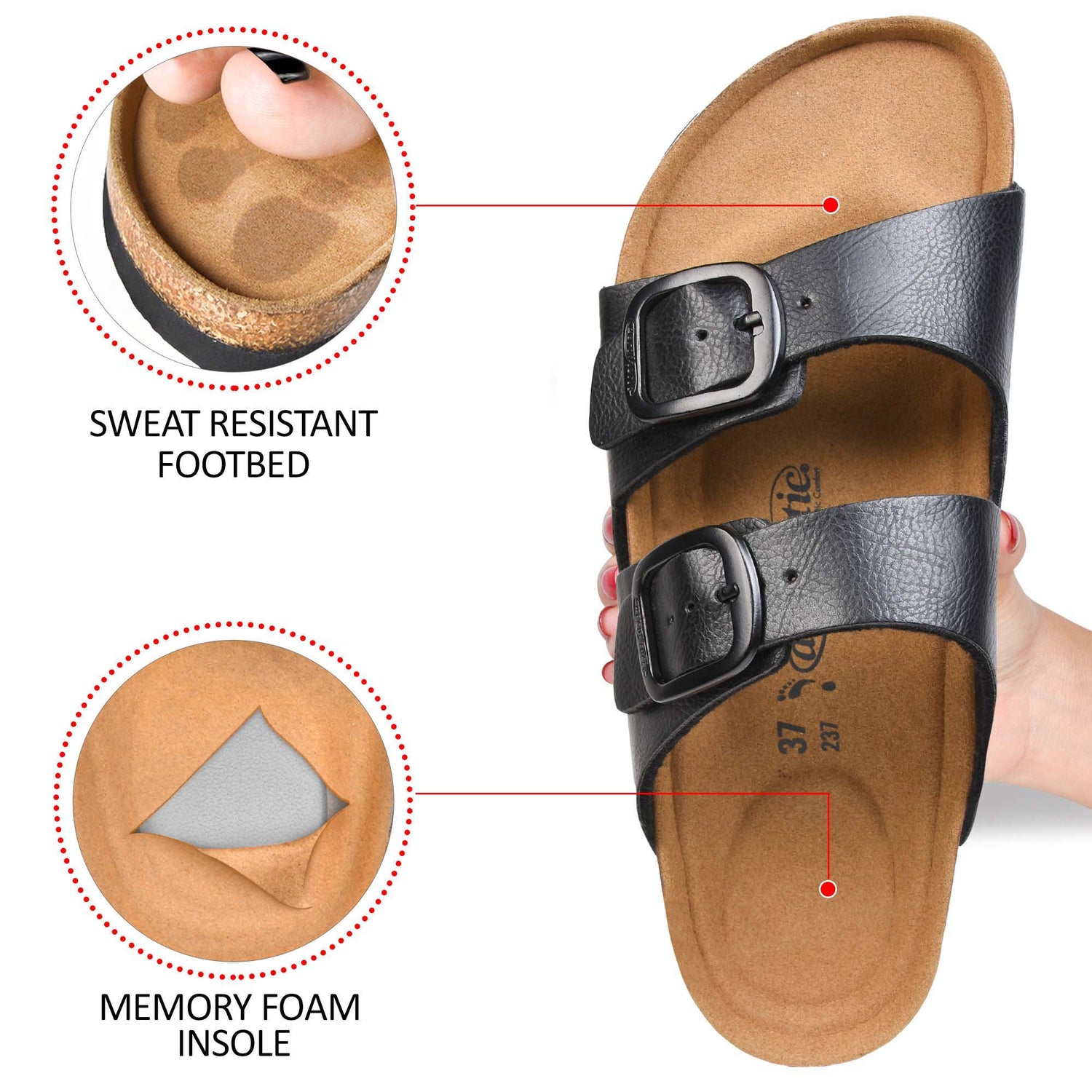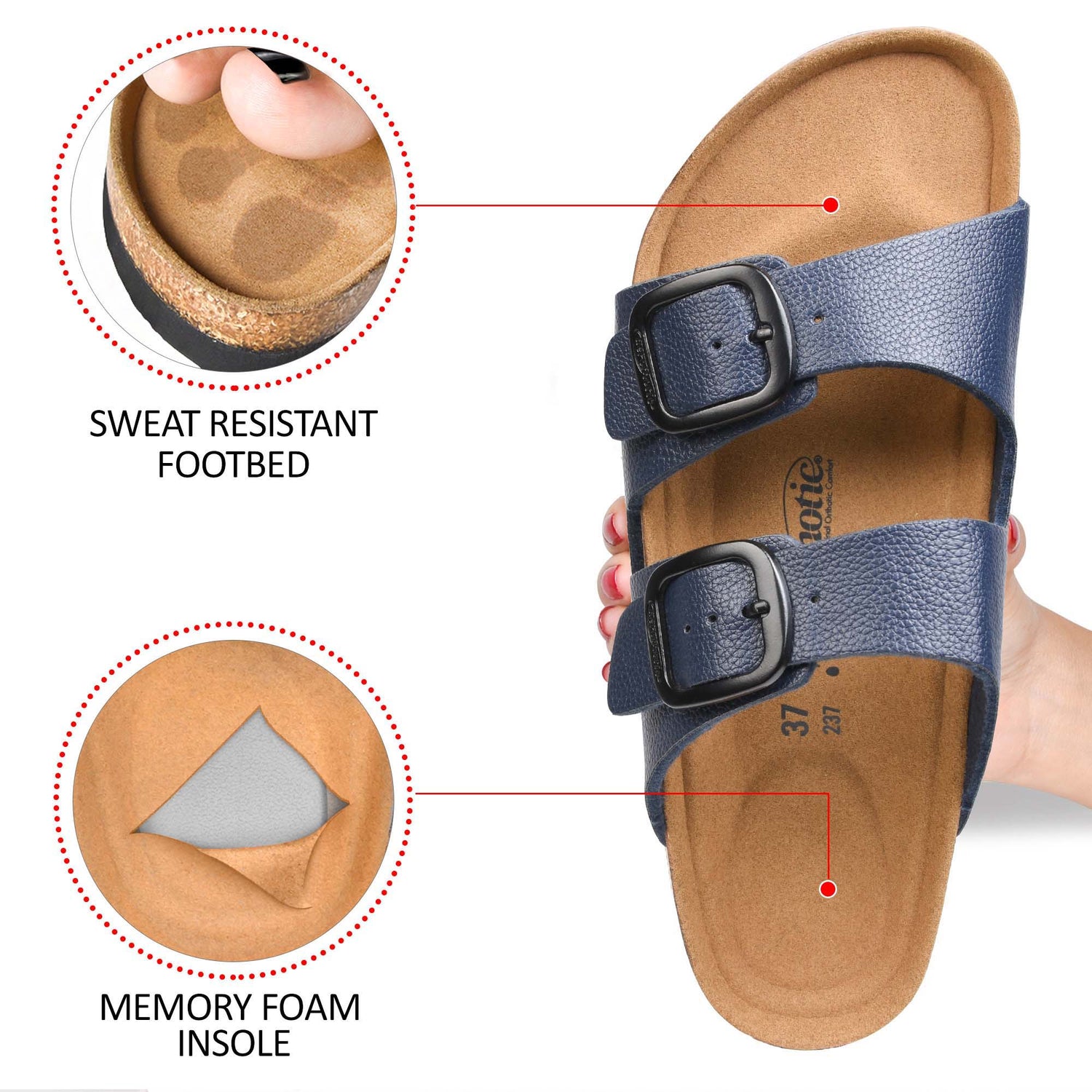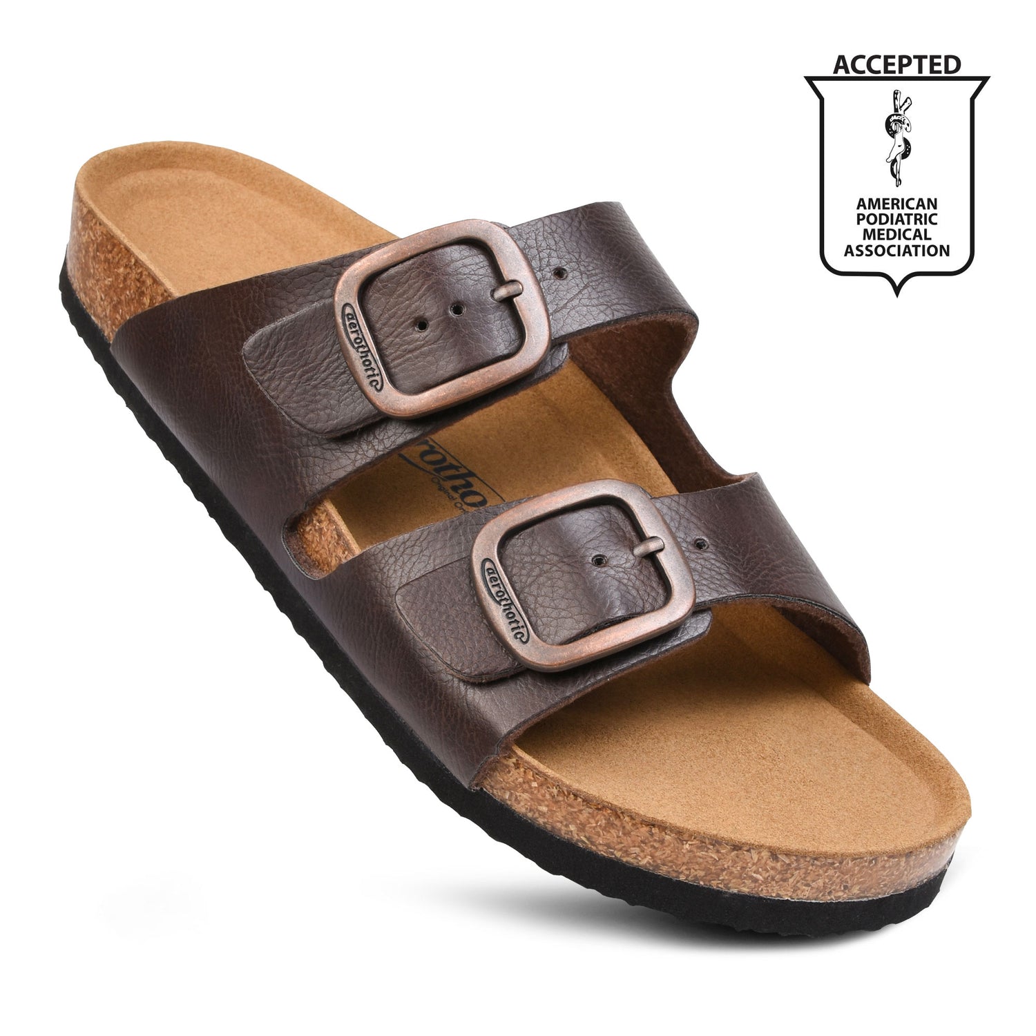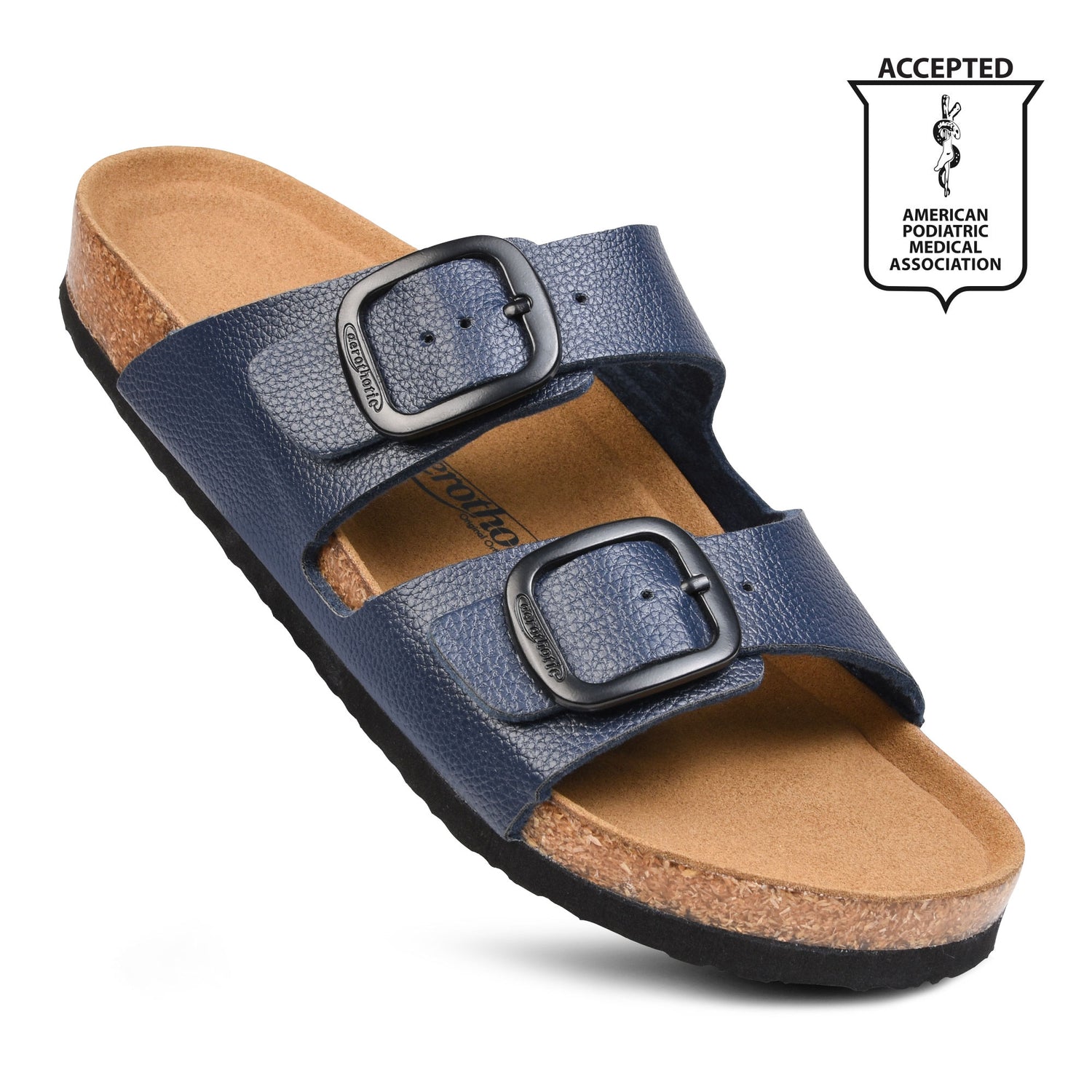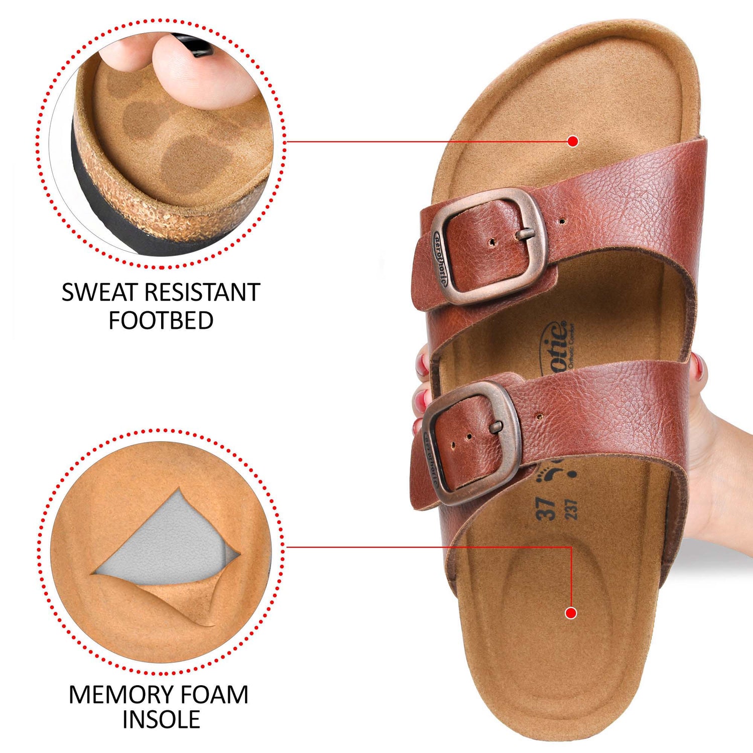 We heard you calling for convenient luxury, and here you go. Arete (PU1107) dual strap sandals are our ultimate find of the year to satisfy your style and comfort cravings. Unisex sandals with arch support are reliable to pick for a day out with your friends or off-trail walking. The uniquely formed cork footbed offers a stable fitting to every foot and fills the arch cavity while you wear them for an ideal tread. Its high-quality material serves the purpose by increasing product durability. The sturdy outsole with geometrical pattern functions well to resist unwanted shocks and acts as a safety measure for your feet. Synthetic straps give a secure hold to the entire foot structure, and its elegant buckle is a comeback of contemporary summer style.