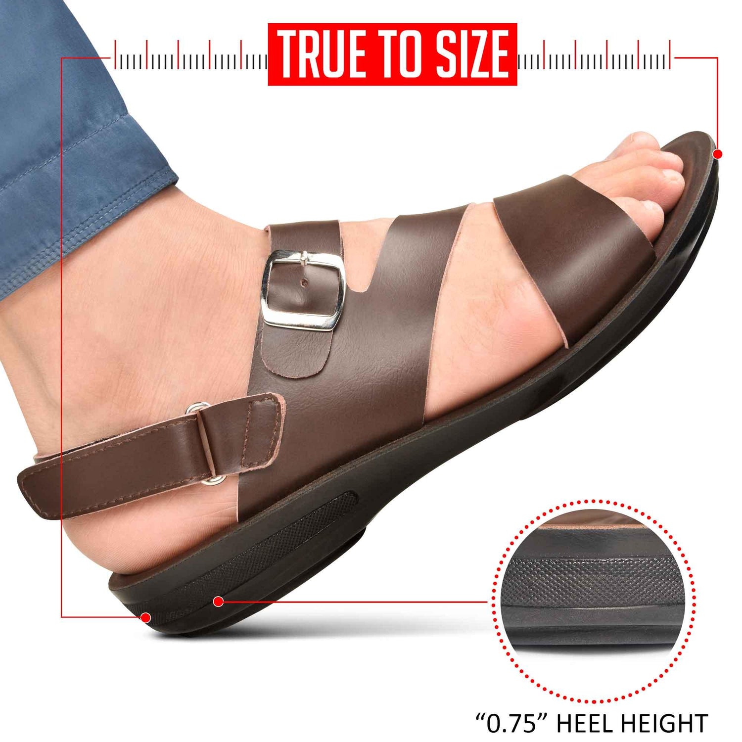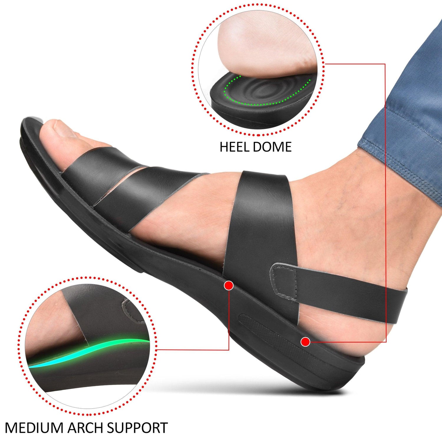 Elevate your go-to style with our best men's sandals for walking with arch support. The arch supportive sandals M1213 have unique adjustability feature consisting of metal buckle midfoot closure along with the Velcro ankle strap. The footbed incorporates microfiber domes and a raised toe bar for a massaging feel to the feet. The design works best for casual or semi casual use with the traditional wardrobe. Polyurethane outsole offer durability and traction on all surfaces.