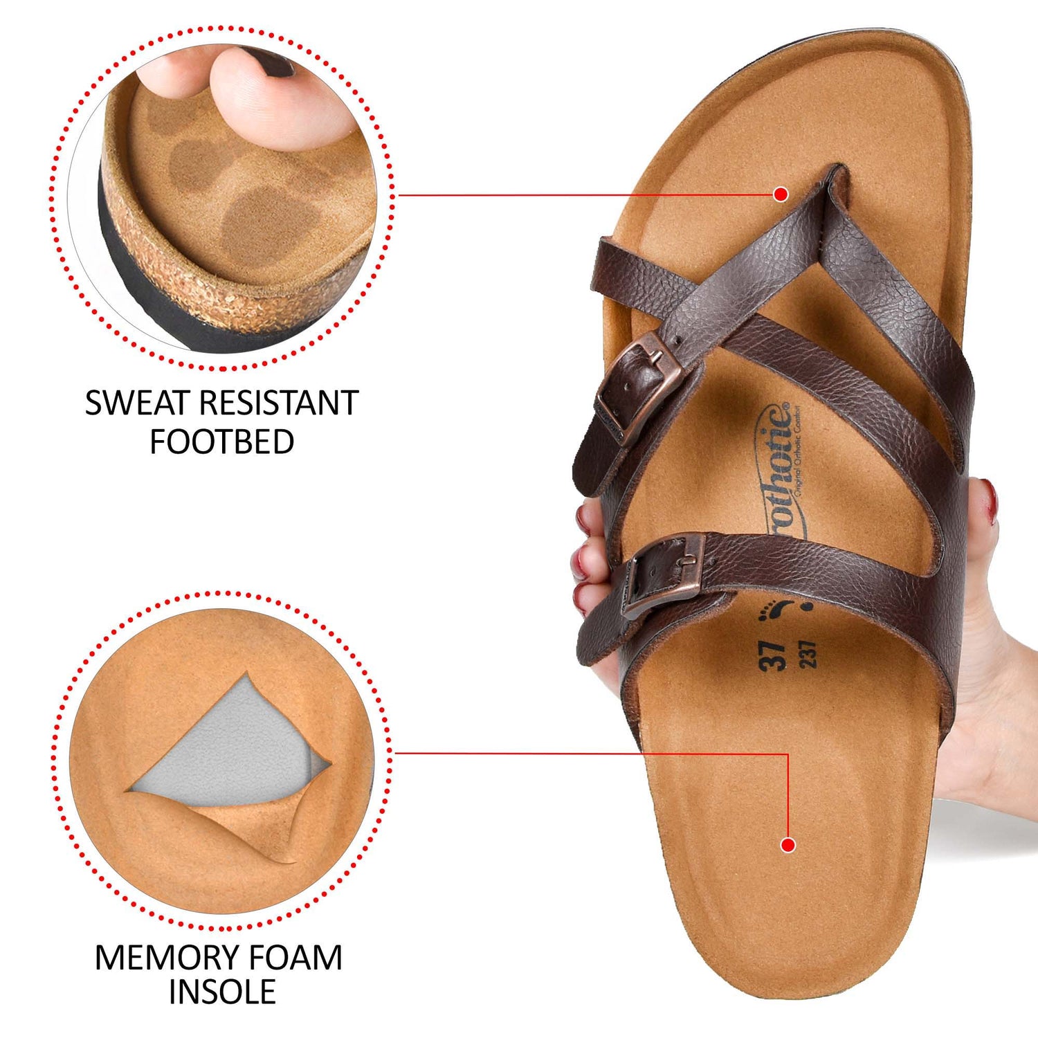 Four straps are combined to make fashion footwear for all the women and men out there. The upper of Celestis (PU1105) is adorned with functional rusty buckles that add an edgy and classy look to your feet. Add a supernal aura to your personality with these strappy sandals. Toe post style accentuates the casual side of these sandals, whereas the strappy upper and regal footbed make them appear to be sophisticated. Pick your size and start enjoying the walk of confidence in these comfy and snug sandals.