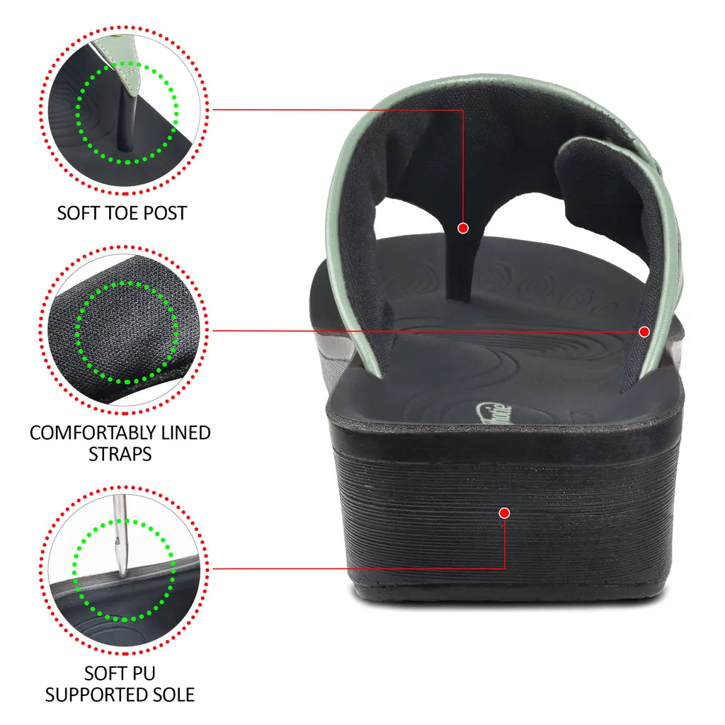 Have you ever experienced elegance with ease? Modern looks mixed with comfort accuracy are accentuated smartly in these Hazel (L0341) womens sandals. The soft and simple synthetic material of the padded strap secures the skin and keeps the feet relax at the end of the day. The placement of metallic ornament on the upper adds extra bling of class to the look. Summer sandals for women has incurred more softness in their sole this time. The polyurethane gel injected footbed of flip flops women makes them long-lasting, which molds according to the natural shape of the feet. The anatomical arch support slippers women keeps you on your feet for long hours while the heel cup contributes to posture alignment. Easy-to-carry flip flops allow you to walk even on the trail roads fearlessly.