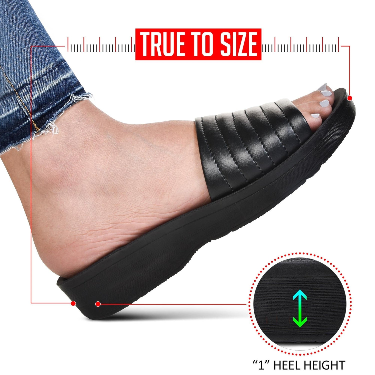 Heel Height (inches): Measures up to 1” approx...