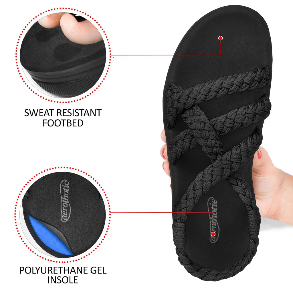 Aerothotic womens walking sandals L1010 are versatile classics for every lady who has suffered a hard time with foot pain. Its legendary comfort and brilliance in support bring ease to every step. The flawless construction of our fashion sandals women not only braces your feminine look but it makes your arches more active to deal with the non-stop activities of the day. The polyurethane gel injected sole keeps you away from foot agitations and gives you a durable experience for extended use.