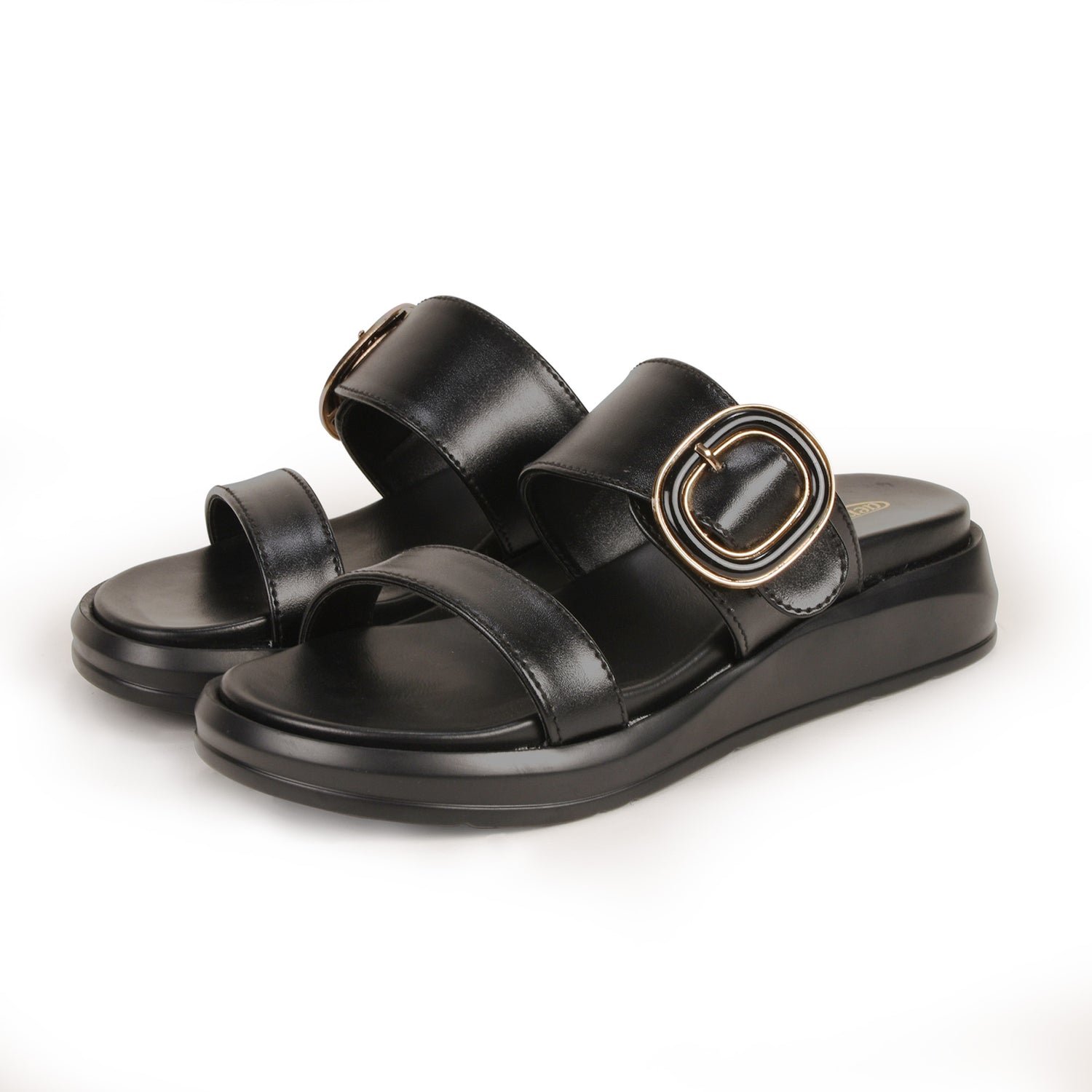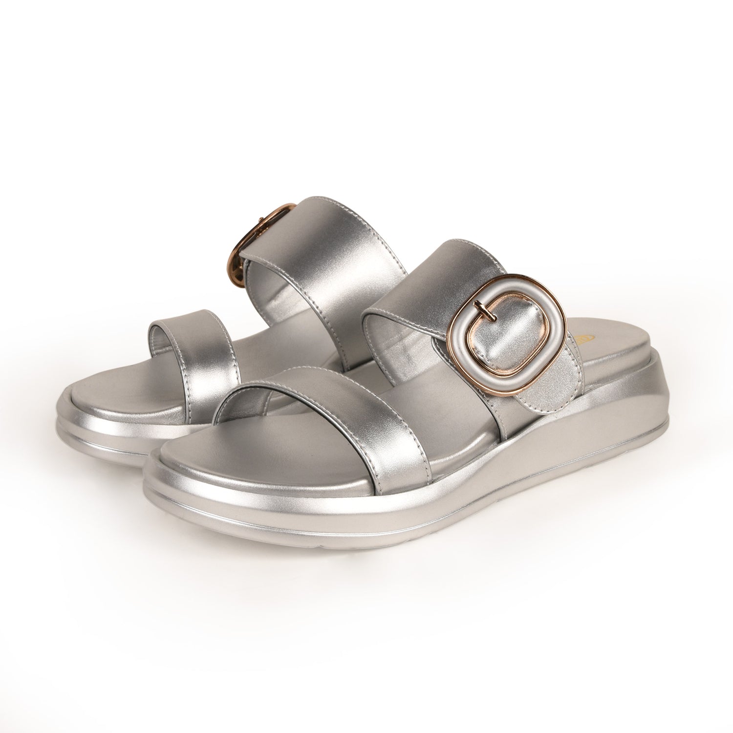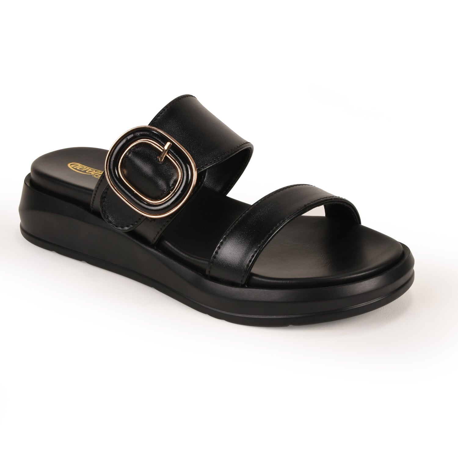Aerothotic sandals for women grounded with the optimal feel of solace and support are just like therapy to feet. Womens summer sandals with polyurethane gel injected footbed and synthetic leather strap is a combination of luxury and comfort. The toe post of these beach essentials makes sure you won’t get any sore spot. Whereas, the softness of its thick sole molds according to the distinctive foot shapes for a natural feel. The orthopedic stage of Othila (P2301 ) ladies sandals is compiled with comfortable padded straps to execute the concept of performance and style. The arch support of these walking sandals women makes long-day expeditions easy and possible for every woman. Comfortable flip flops for women have a striking metallic knob to give you an elite look. Women sandals give ultimate reasons to wear on streets on a hot sunny day.