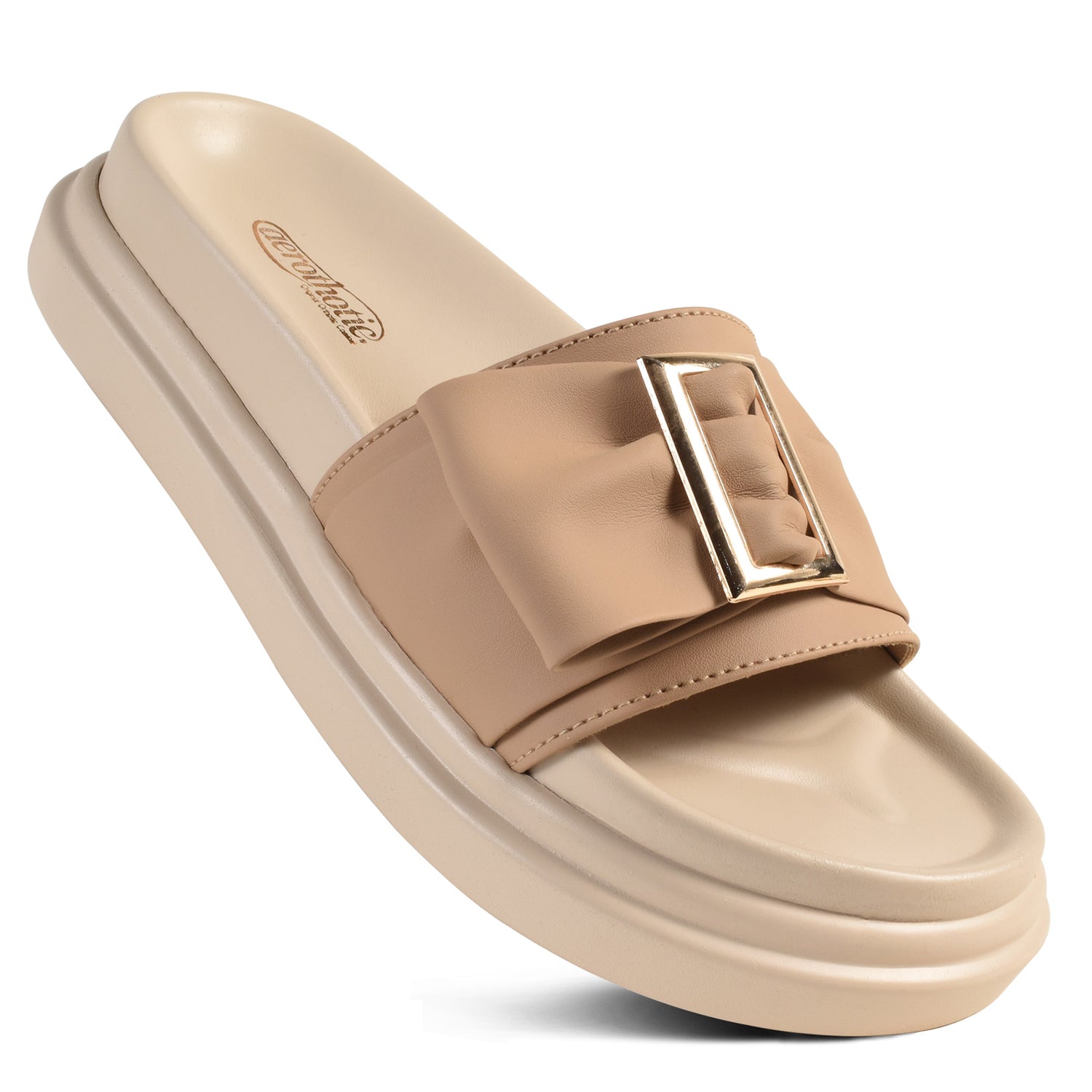 Step into elegance and comfort with these chic nude slide sandals, perfect for casual outings or relaxed gatherings. Crafted with a soft, cushioned footbed that supports your feet all day long, these sandals blend fashion with function seamlessly.