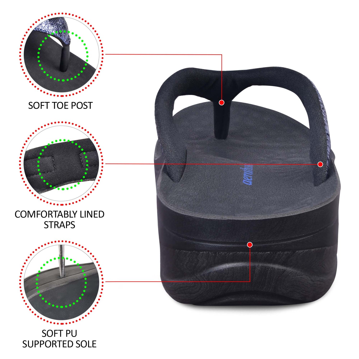 Add a spark of comfort to your wardrobe essentials with these Sequin styled thong sandals! Leather cushioned thongs with inward soft foam surface enables your feet to breathe and stay fresh all day long. Minute domes on the stage of these sandals aids in targeting pressure points effectively.