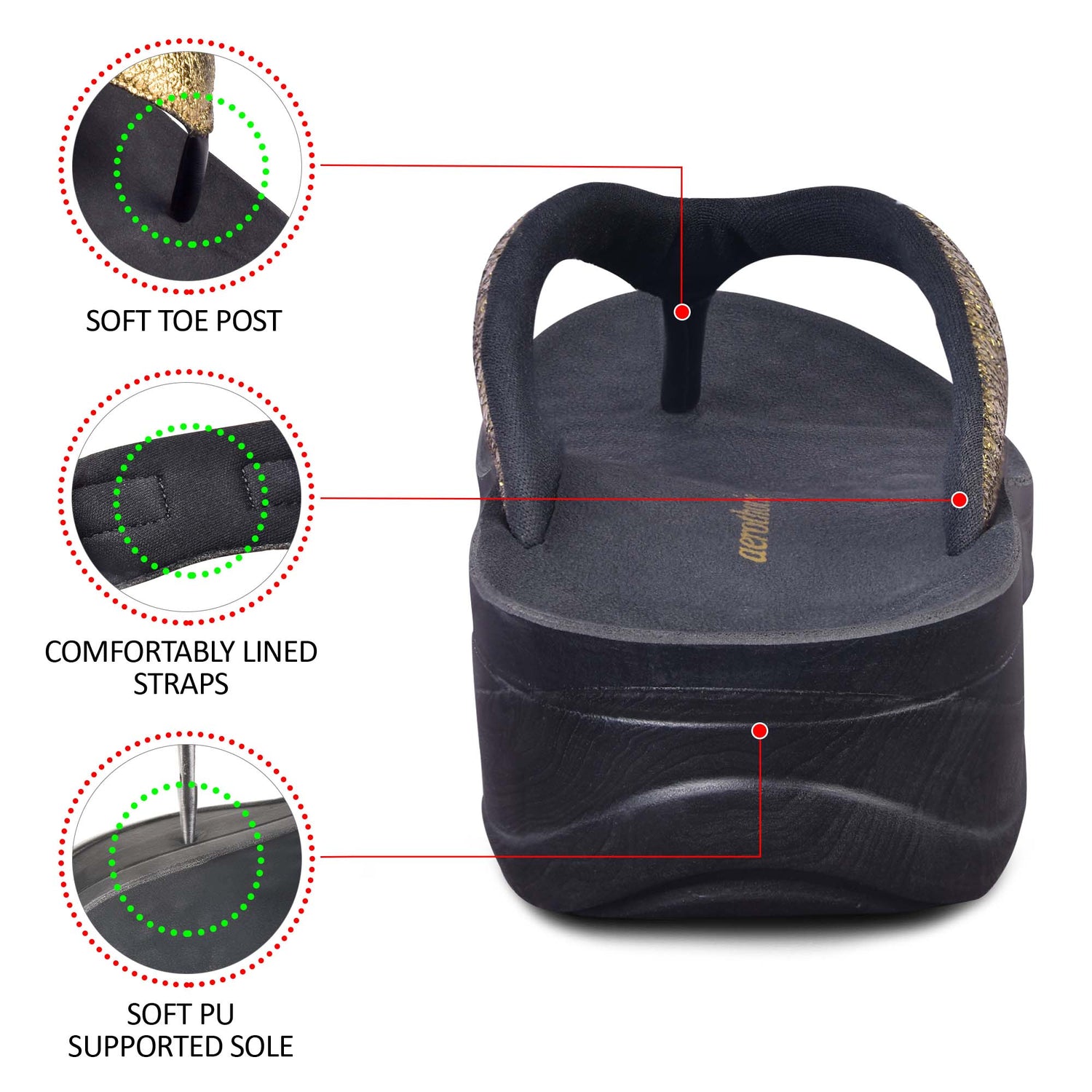 - Thongs are made up of synthetic leather and foam with a sequined finishing, aiding in providing premium comfort.