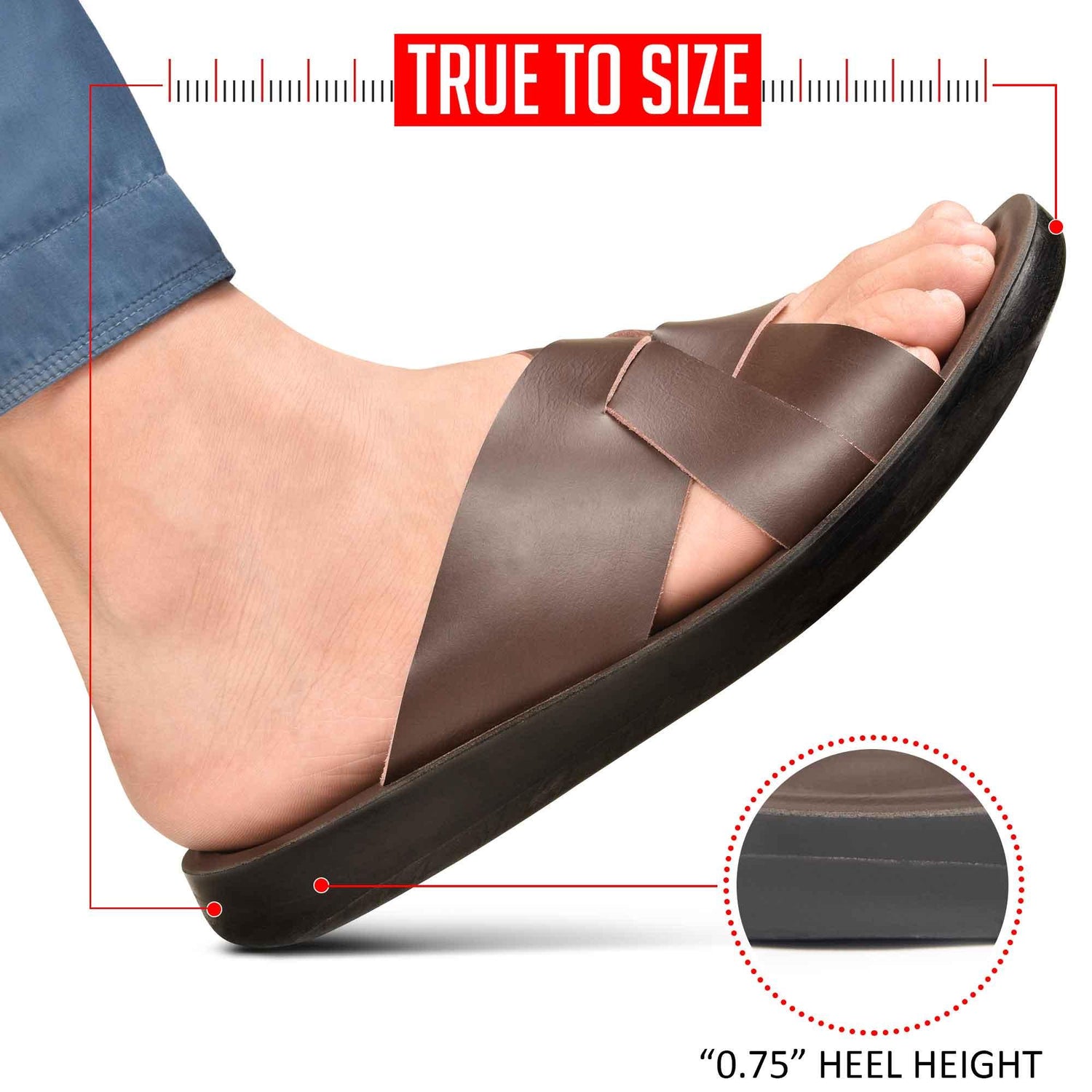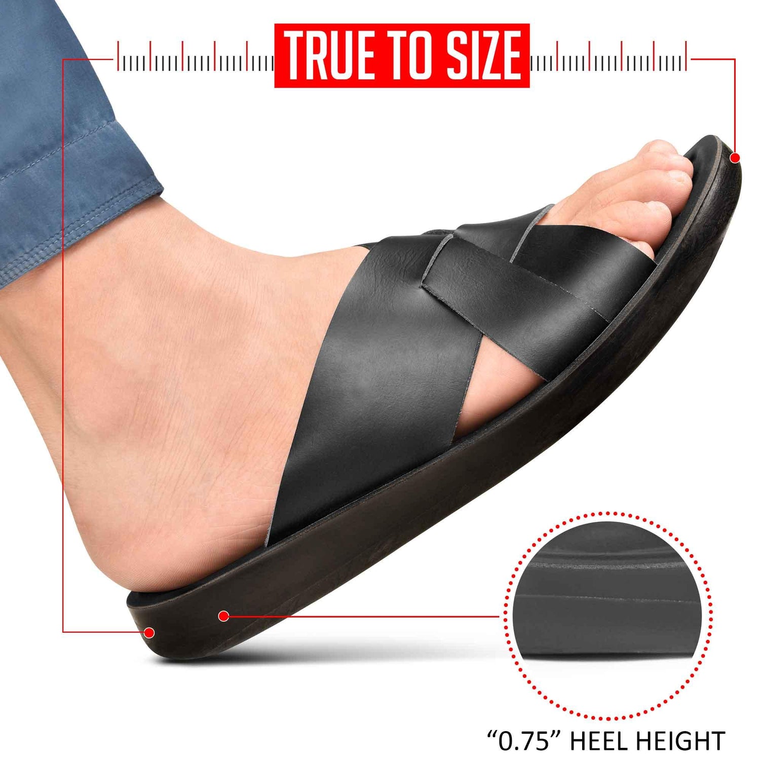 If simple is your style, then Aerothotic casual men’s slide sandals M1313 are the right pick. Stylish and practical are made with high-quality material that will last long. The outsole is slip-resistant and offers flexibility, durability, and comfort. The slides for men has a firm arch support and a heel dome providing improved cushioning to the feet. Along with a comfortable PU footbed, this pair boasts moisture-wicking and shock-absorbing abilities.