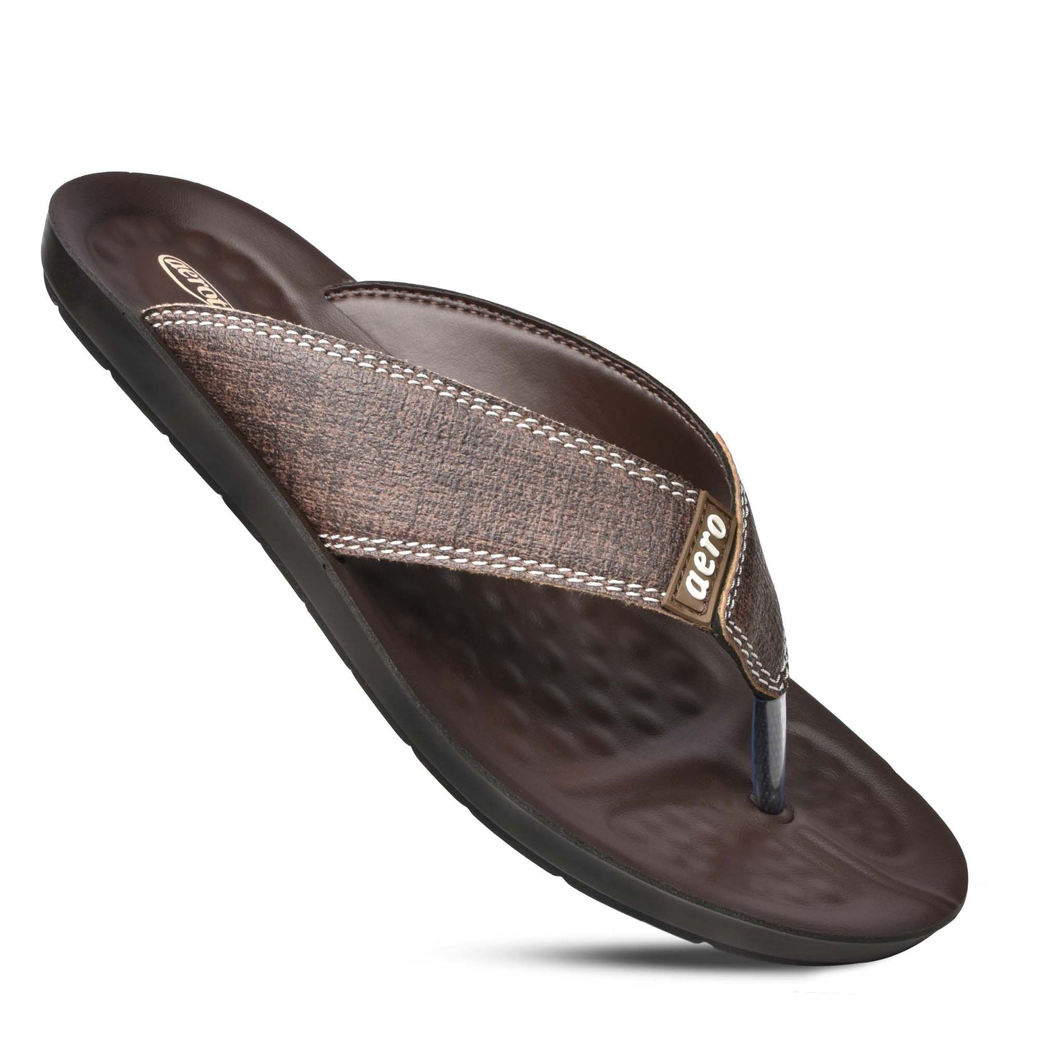 Encounter the epitome of comfort, quality and care in our breakthrough thong style sandals for men. The thongs are composed of superior quality leather with an embossed Aerothotic logo to enhance the style statement of these versatile sandals. Micro fiber domes on the stage acts as a massager relieving distress related to feet. Thread kneaded thong borders for additional support aligned with cushioned footbed, anatomically designed framework of the stage typically caters the pressure points of forefoot, midfoot and hindfoot. Avail these super comfortable sandals for men in sizes perfect for your feet and elegant colors.