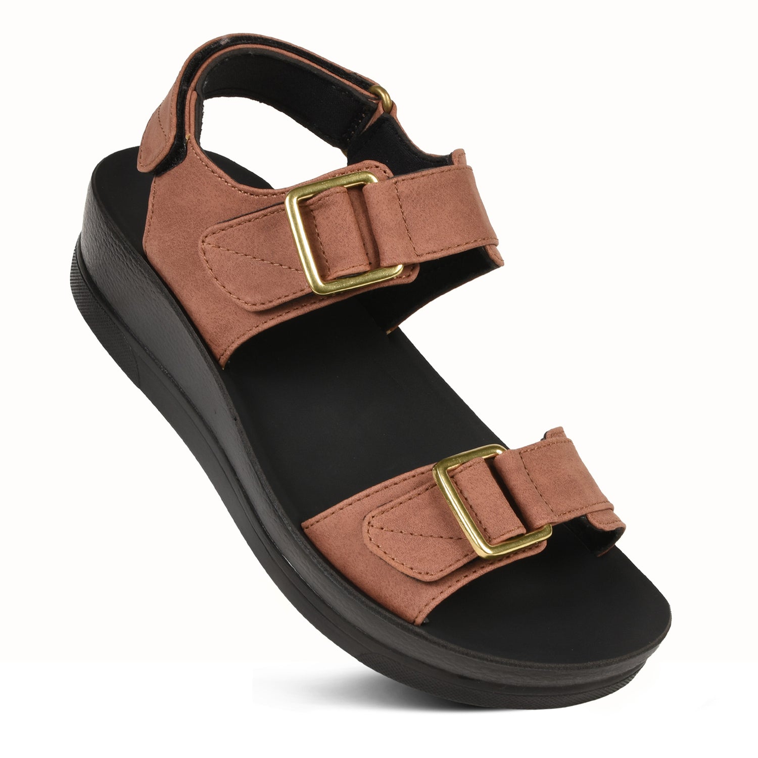 Are you tired of looking for the right pair and still couldn't find one? You don't need to worry anymore now. The modern look of our women sandals L1422 leave an everlasting impression, and its super supportive features deal with chronic pain efficiently. Our all-in-one comfortable sandals for women look sturdy and hold up well when you slide in them. We have used the high-quality material in our slingback platform sandals for women to keep your feet in a functional state all day.
