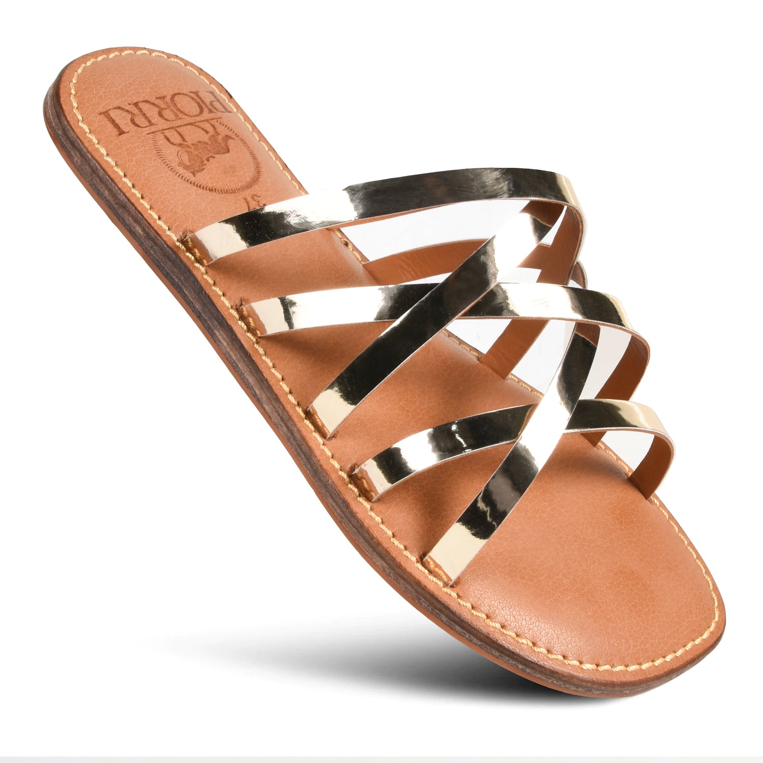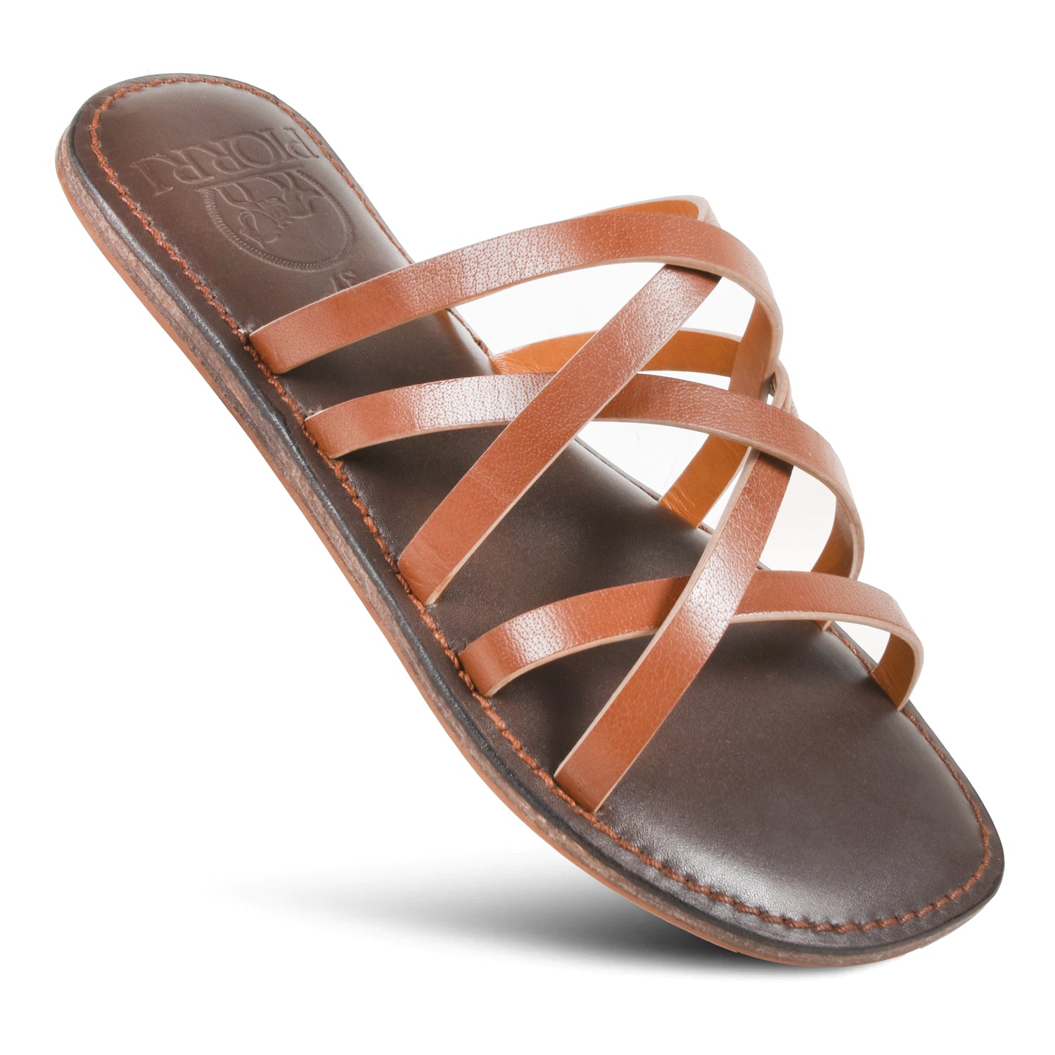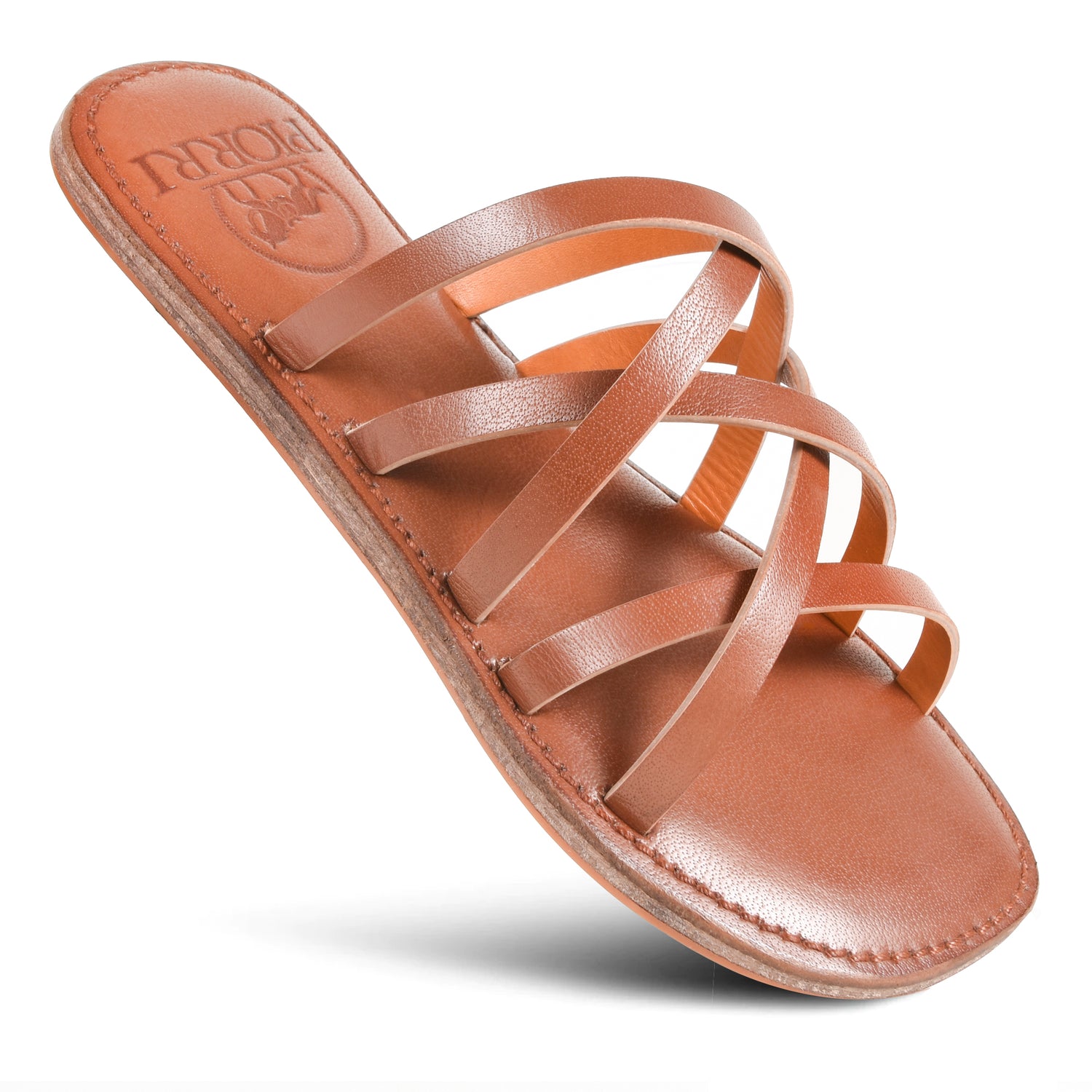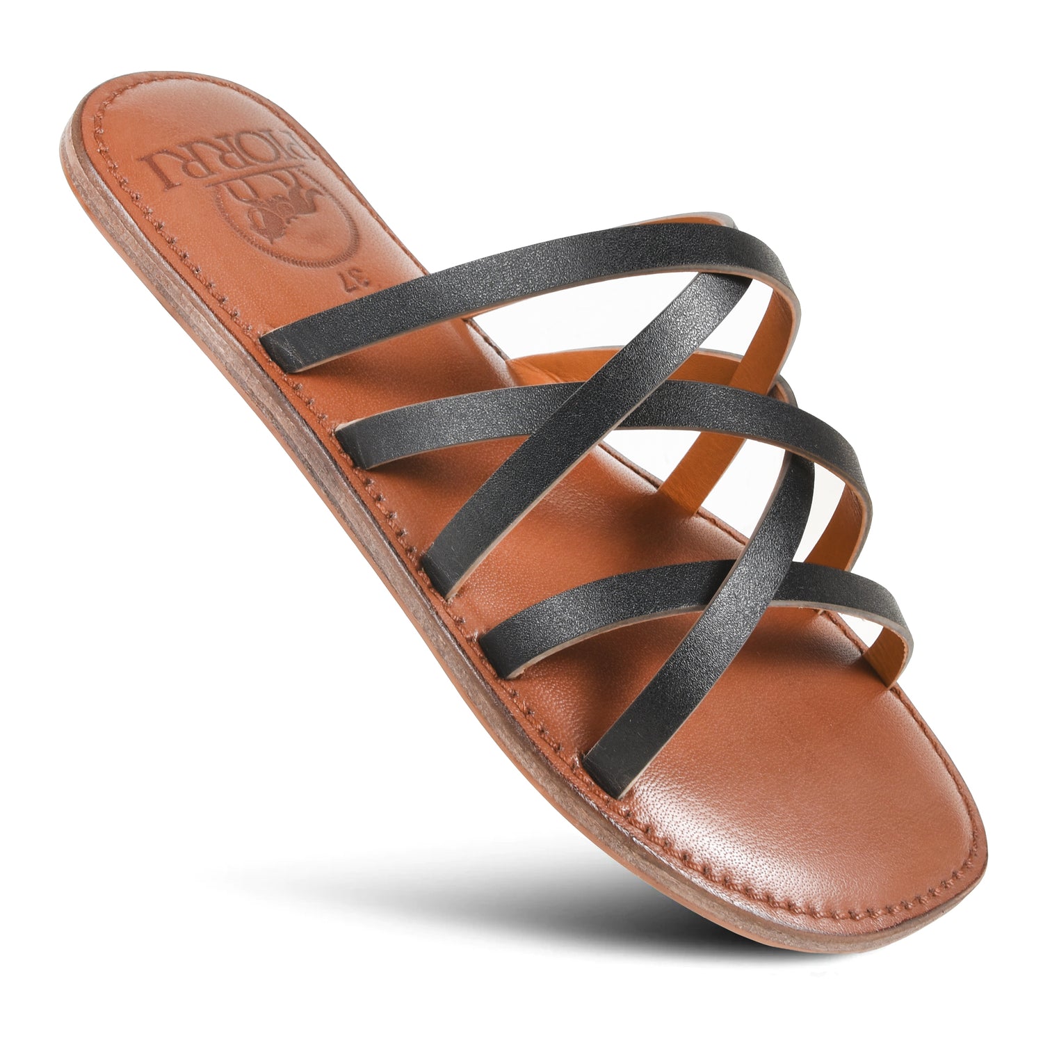 PIORRI by Aerothotic - Averi Women’s Flat Natural Leather Comfortable Slide Sandals - LK2113