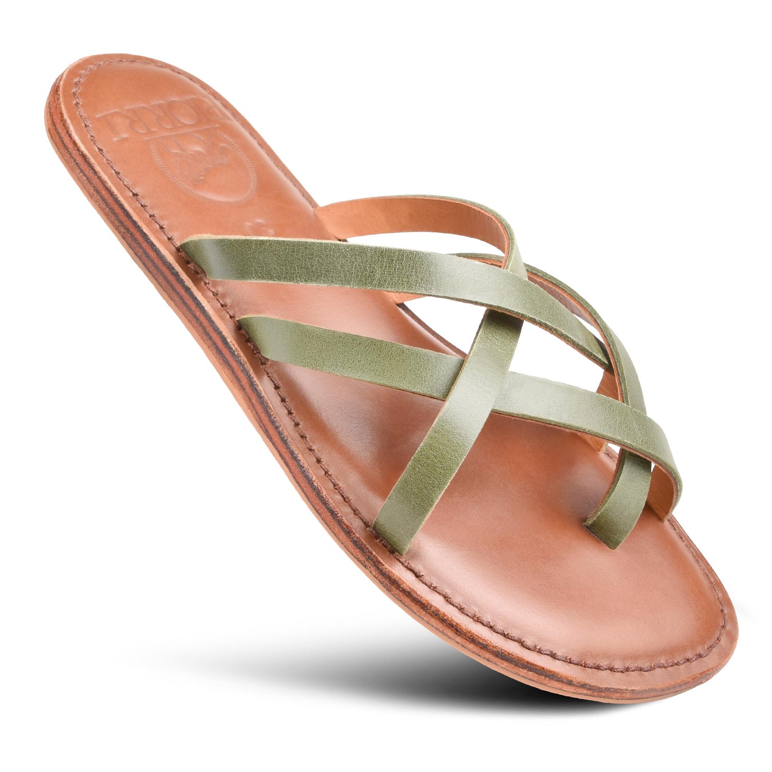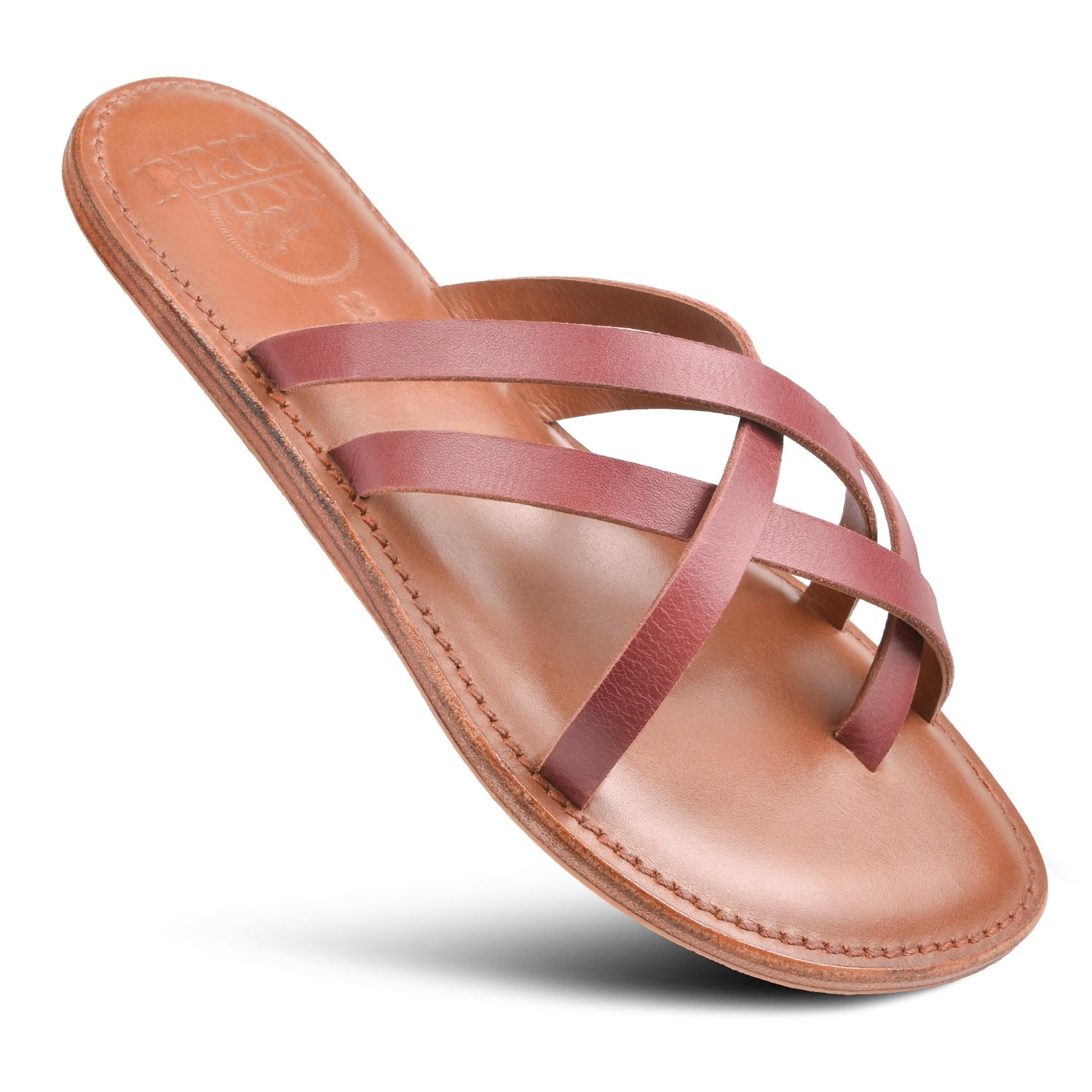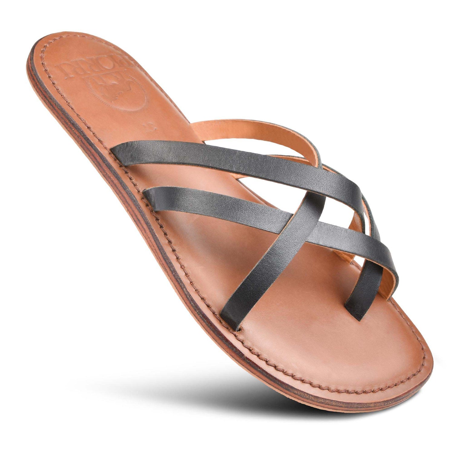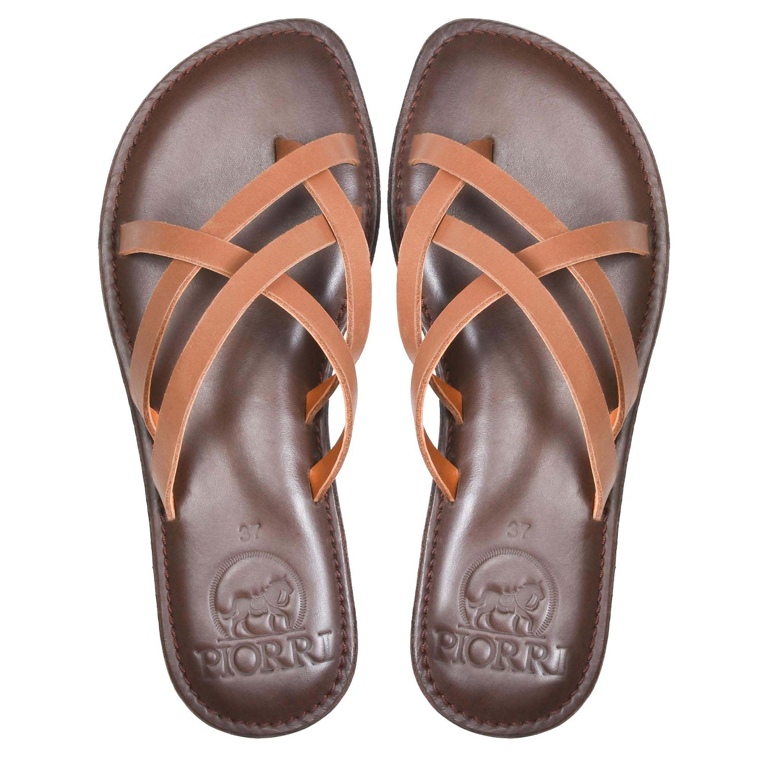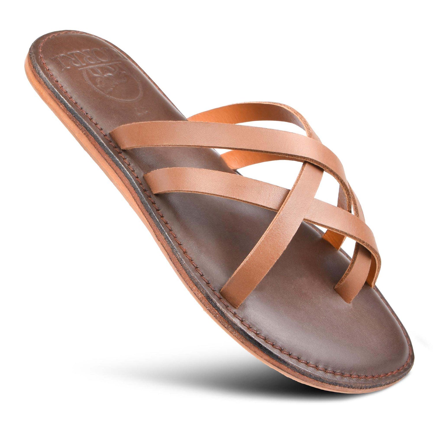 PIORRI by Aerothotic - Dione Women’s Split Toe Strappy Natural Leather Slide Sandals - LK2107