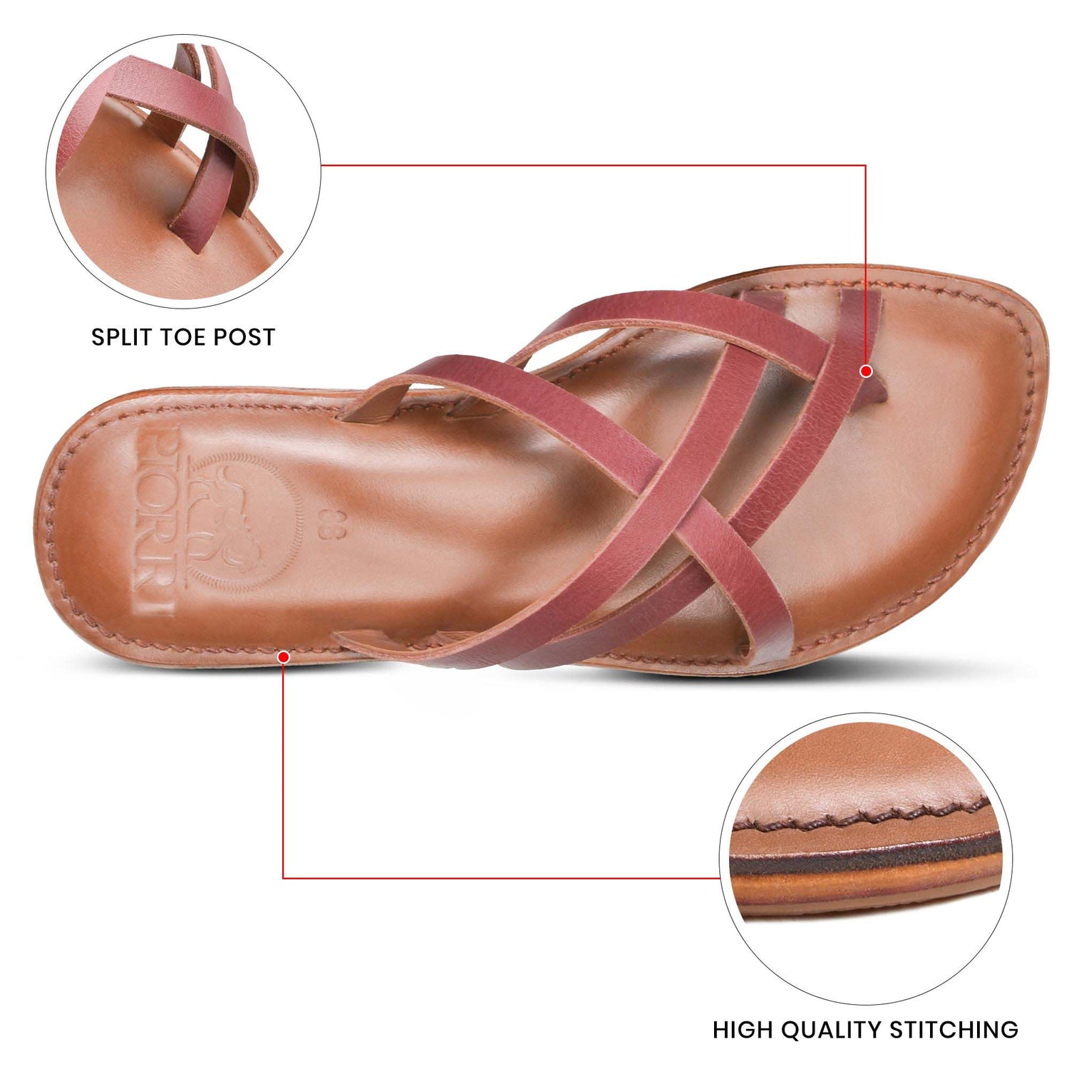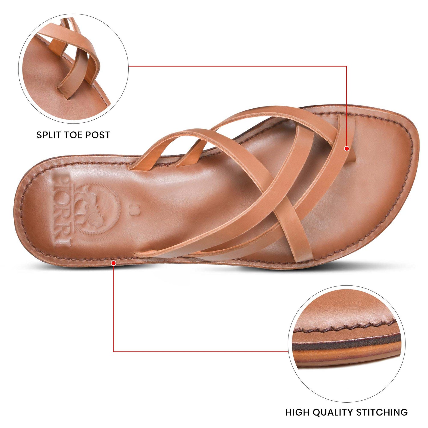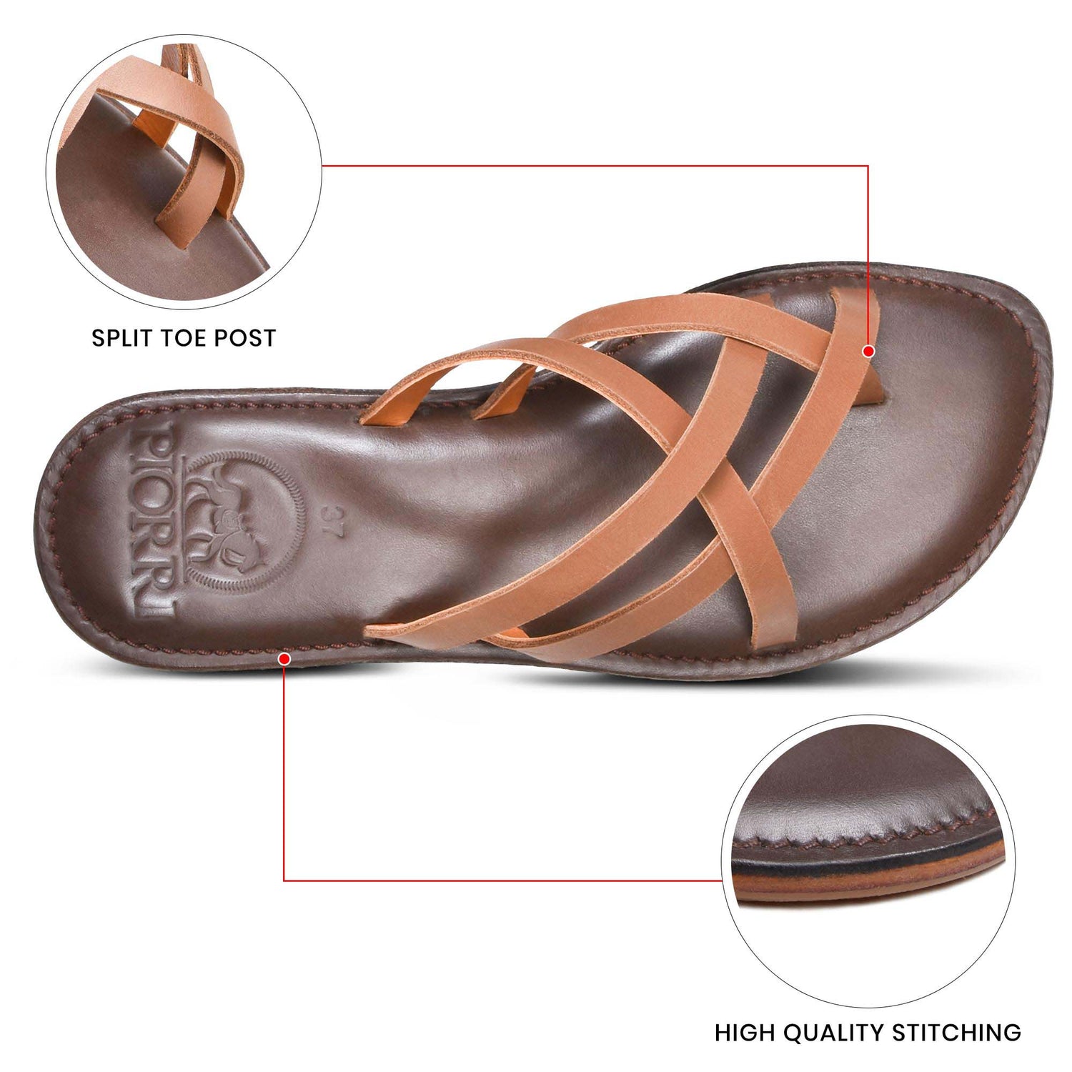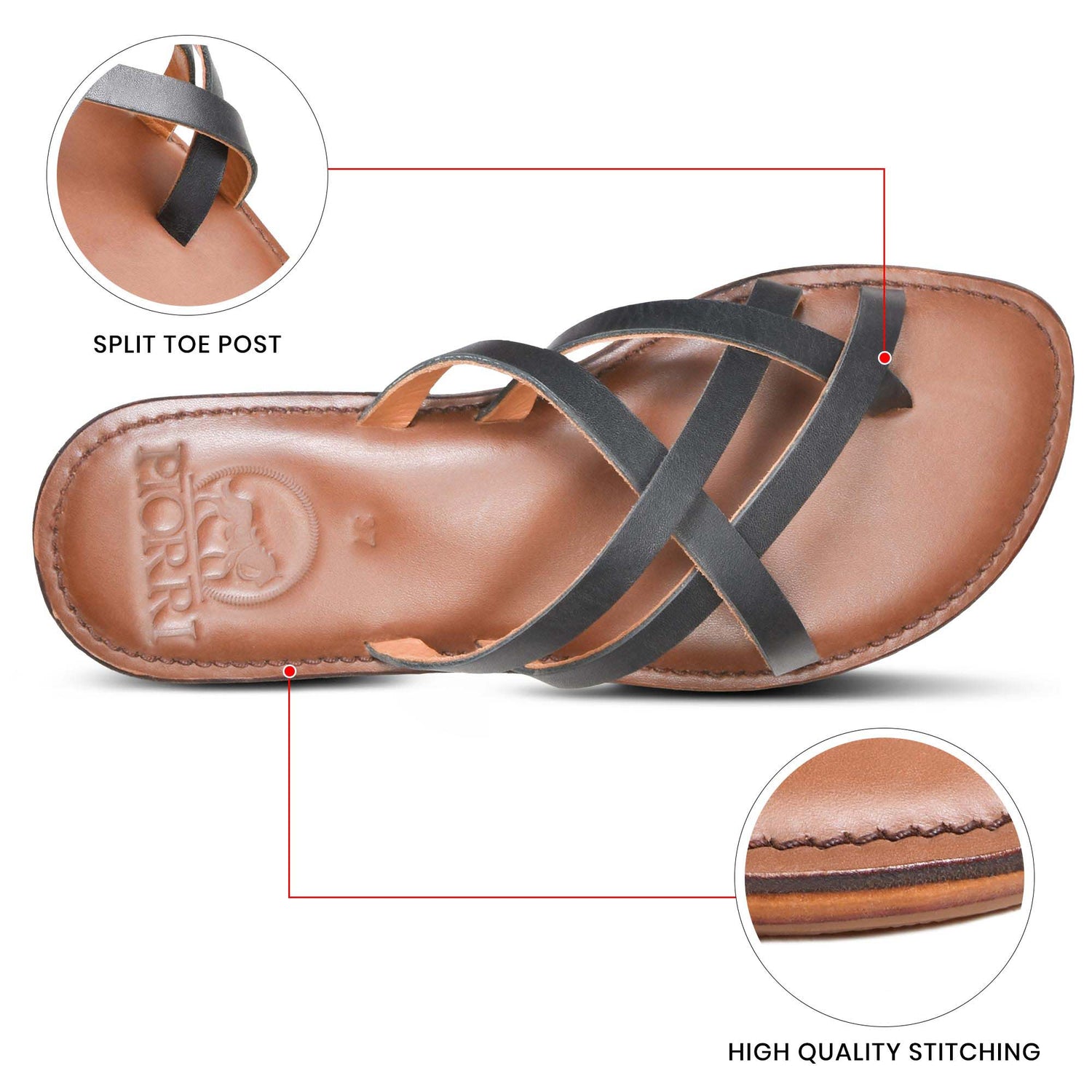 Need the right option to spend a carefree summer season? Piorri sandals are a true summer staple. Staycations, cruise trips, getaways, city strolls, or at the office -strappy natural leather sandals for women is our hassle free, day-to-night pair. The footwear is designed comfortable with its sleek strap style. Its ergonomic design complements the natural foot structure to make the feet stay cool. The built-in arch support sandals women adjusts according to the curves of your feet.