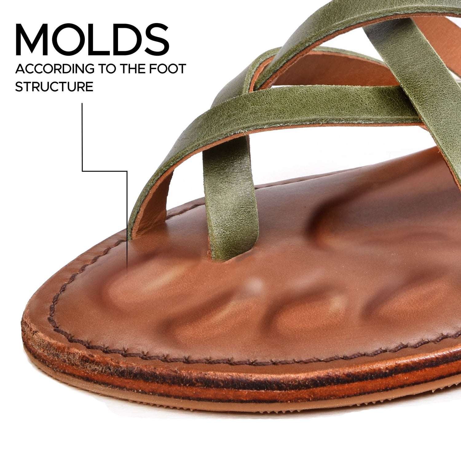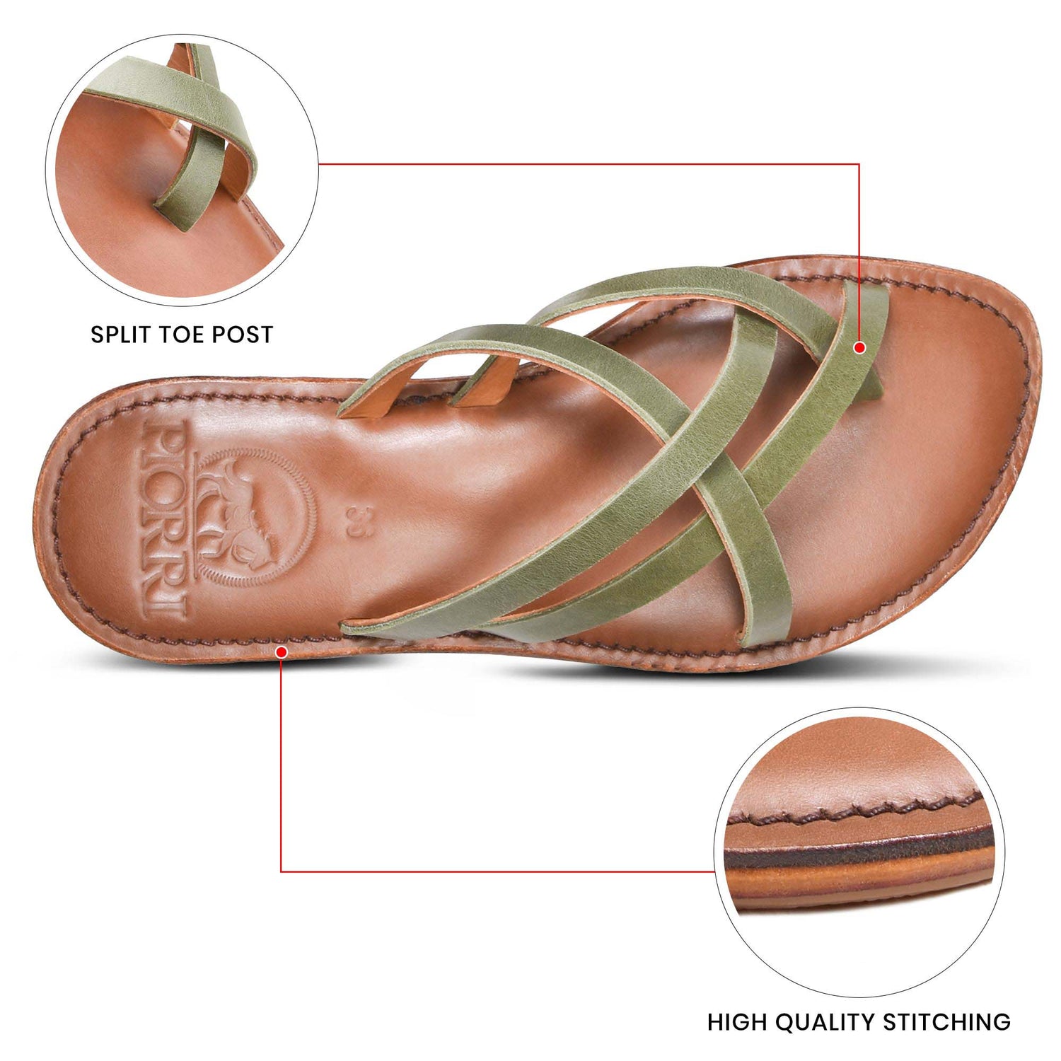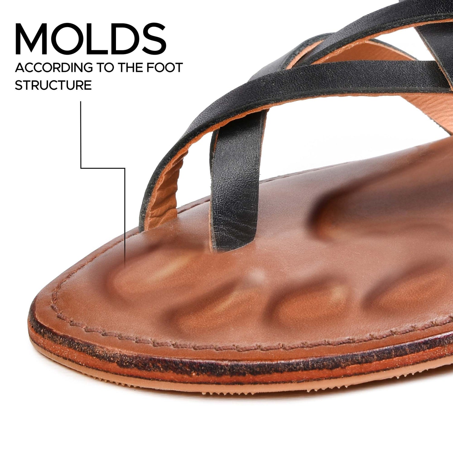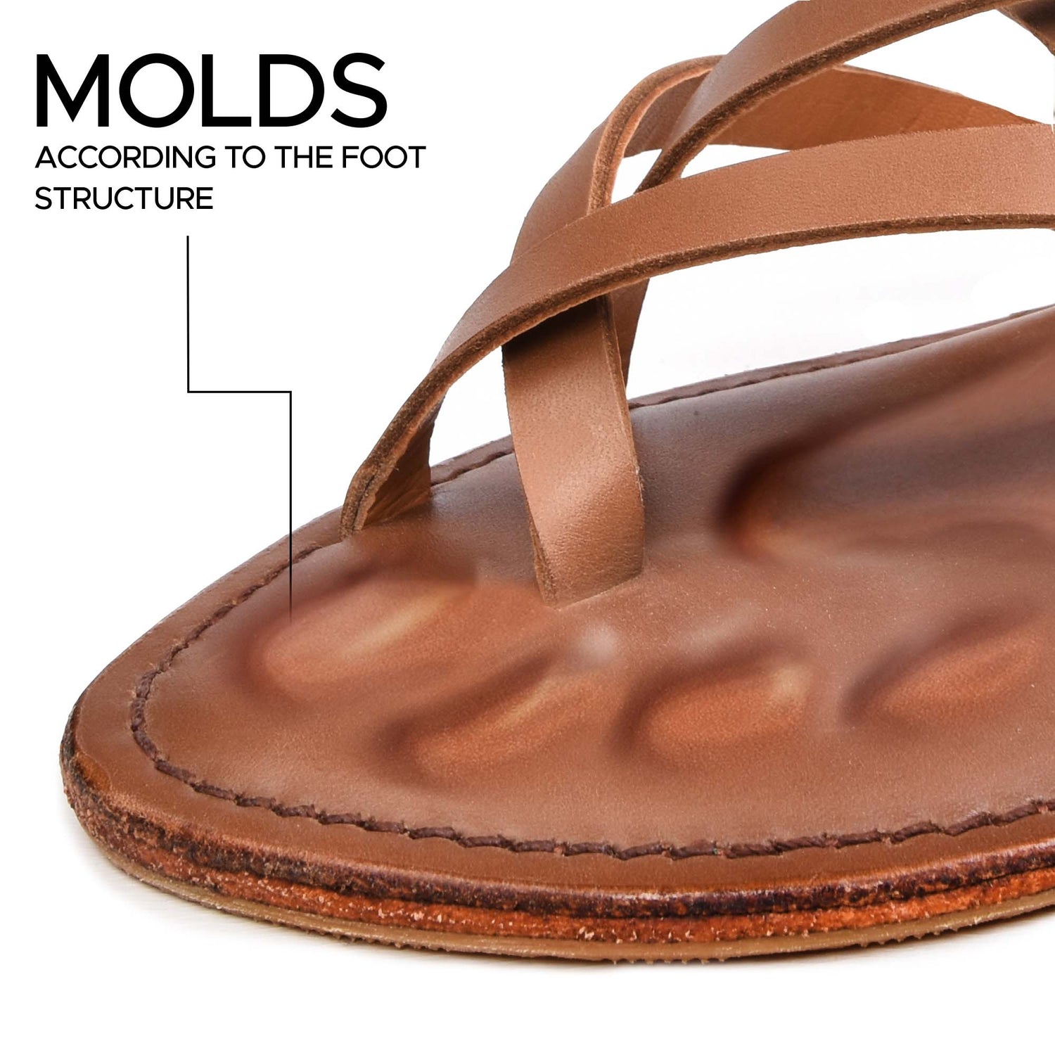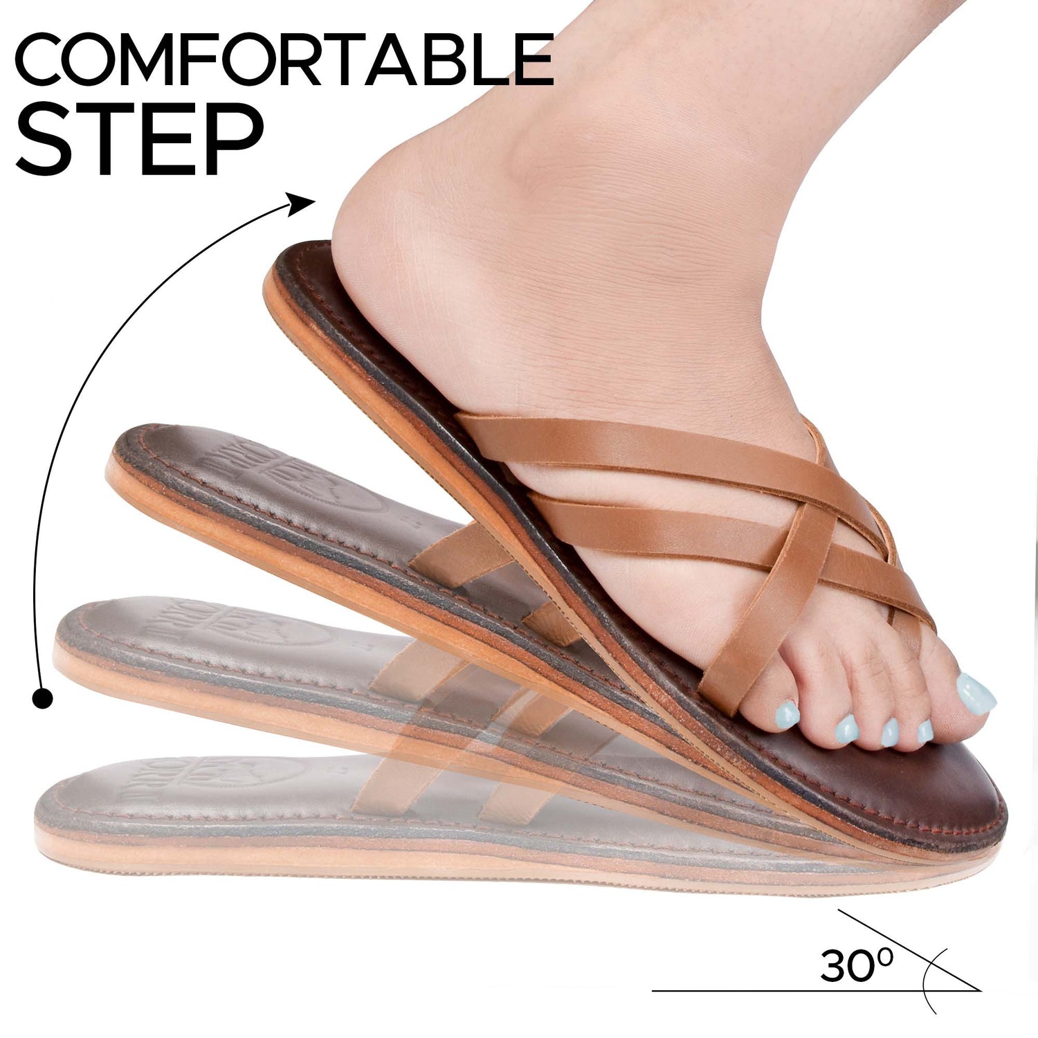 Need the right option to spend a carefree summer season? Piorri sandals are a true summer staple. Staycations, cruise trips, getaways, city strolls, or at the office -strappy natural leather sandals for women is our hassle free, day-to-night pair. The footwear is designed comfortable with its sleek strap style. Its ergonomic design complements the natural foot structure to make the feet stay cool. The built-in arch support sandals women adjusts according to the curves of your feet.
