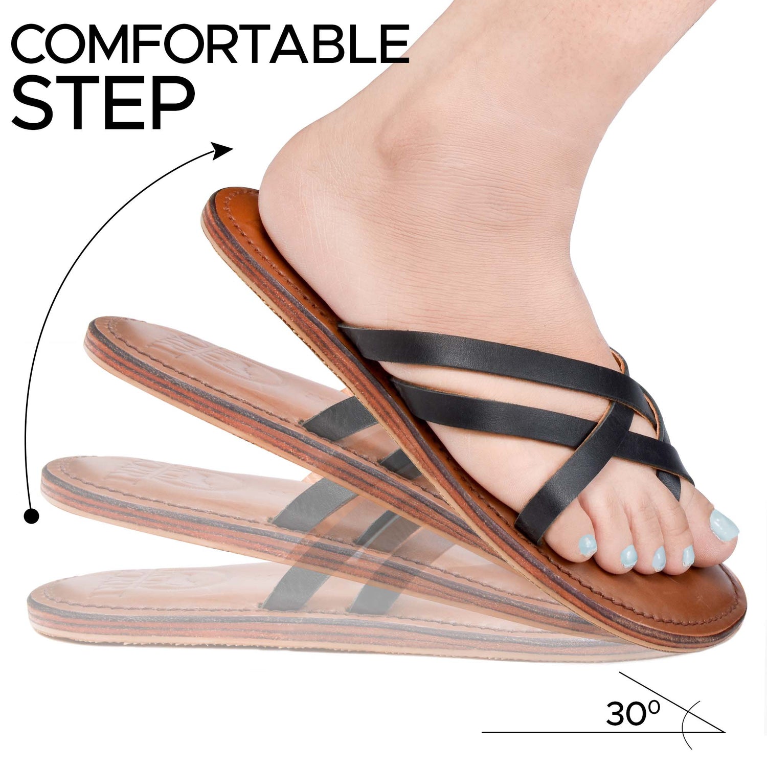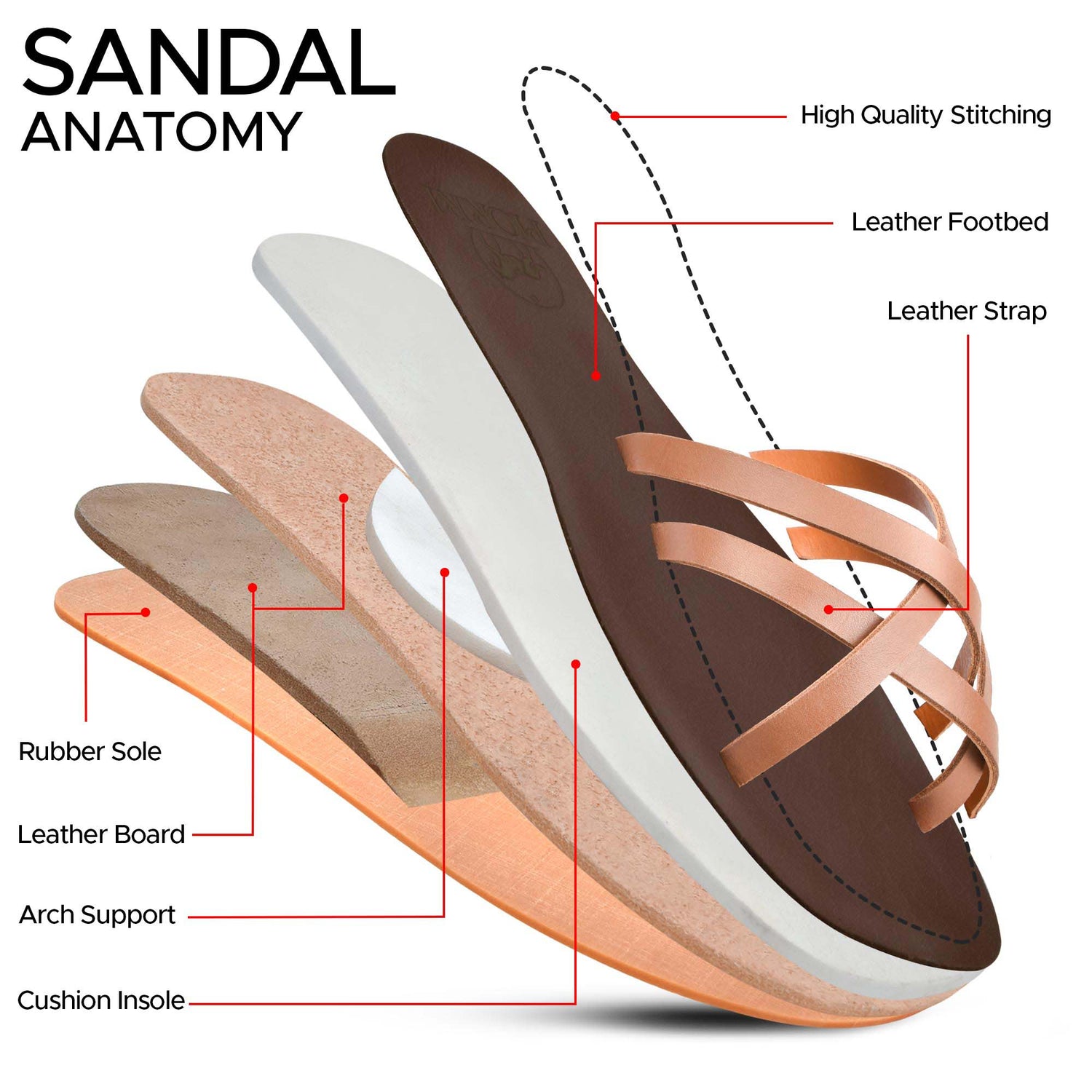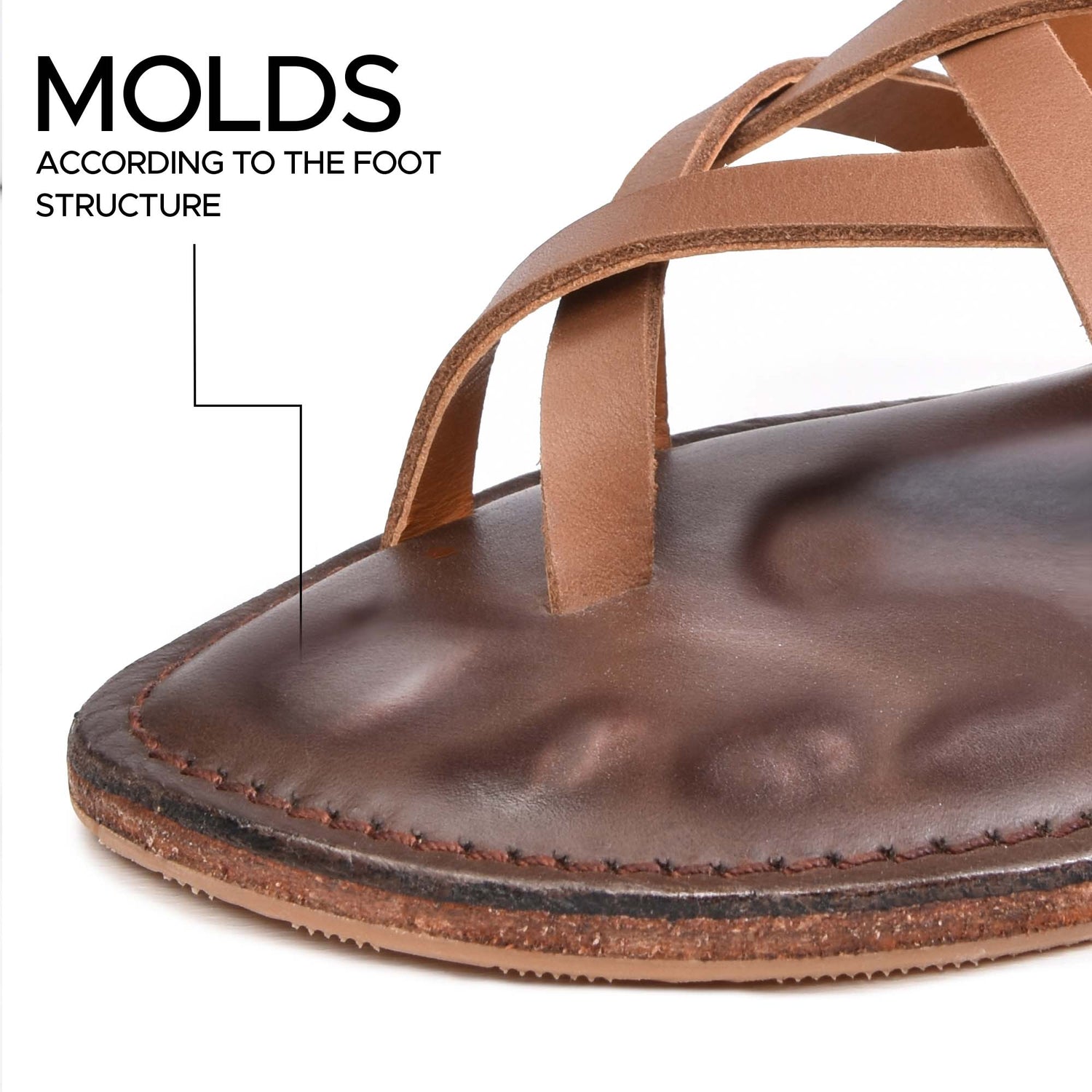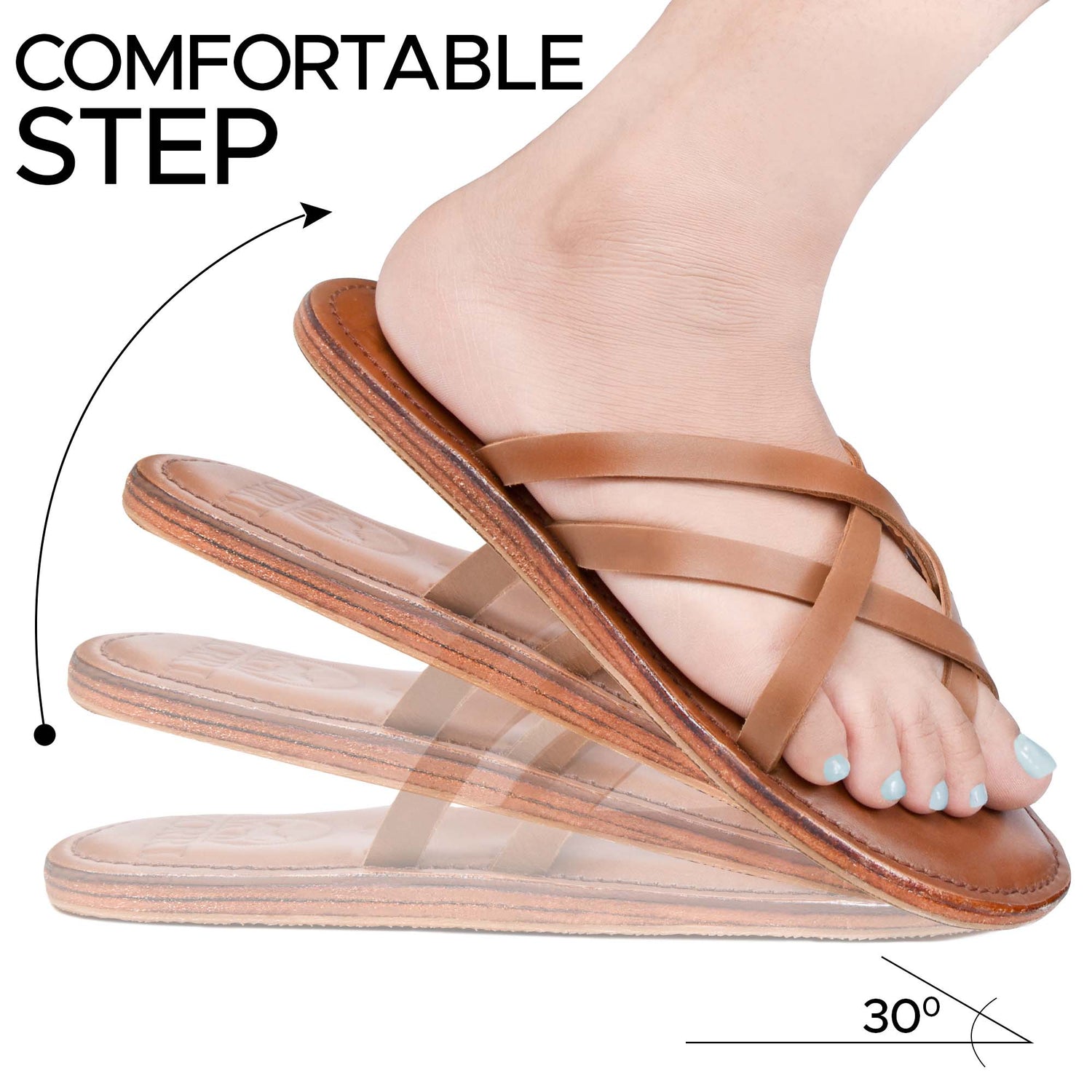 Need the right option to spend a carefree summer season? Piorri sandals are a true summer staple. Staycations, cruise trips, getaways, city strolls, or at the office -strappy natural leather sandals for women is our hassle free, day-to-night pair. The footwear is designed comfortable with its sleek strap style. Its ergonomic design complements the natural foot structure to make the feet stay cool. The built-in arch support sandals women adjusts according to the curves of your feet.