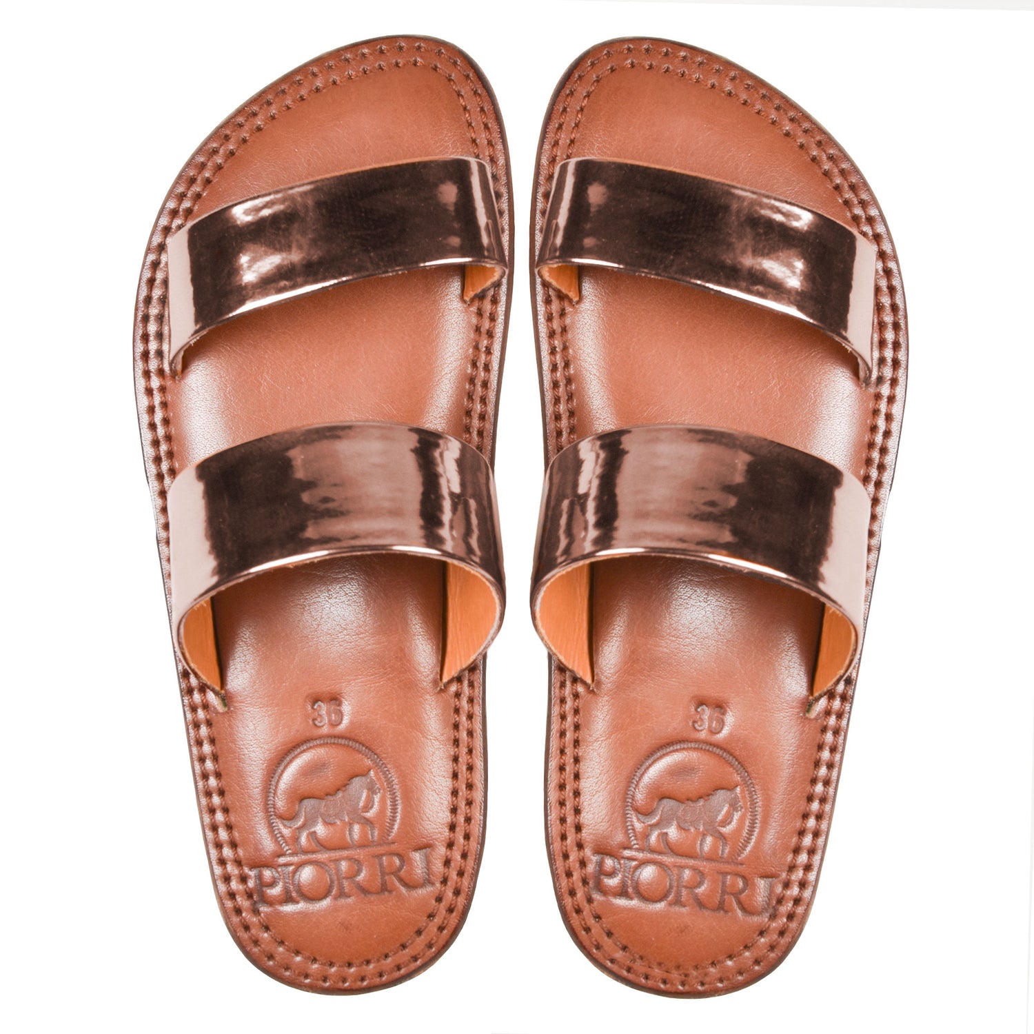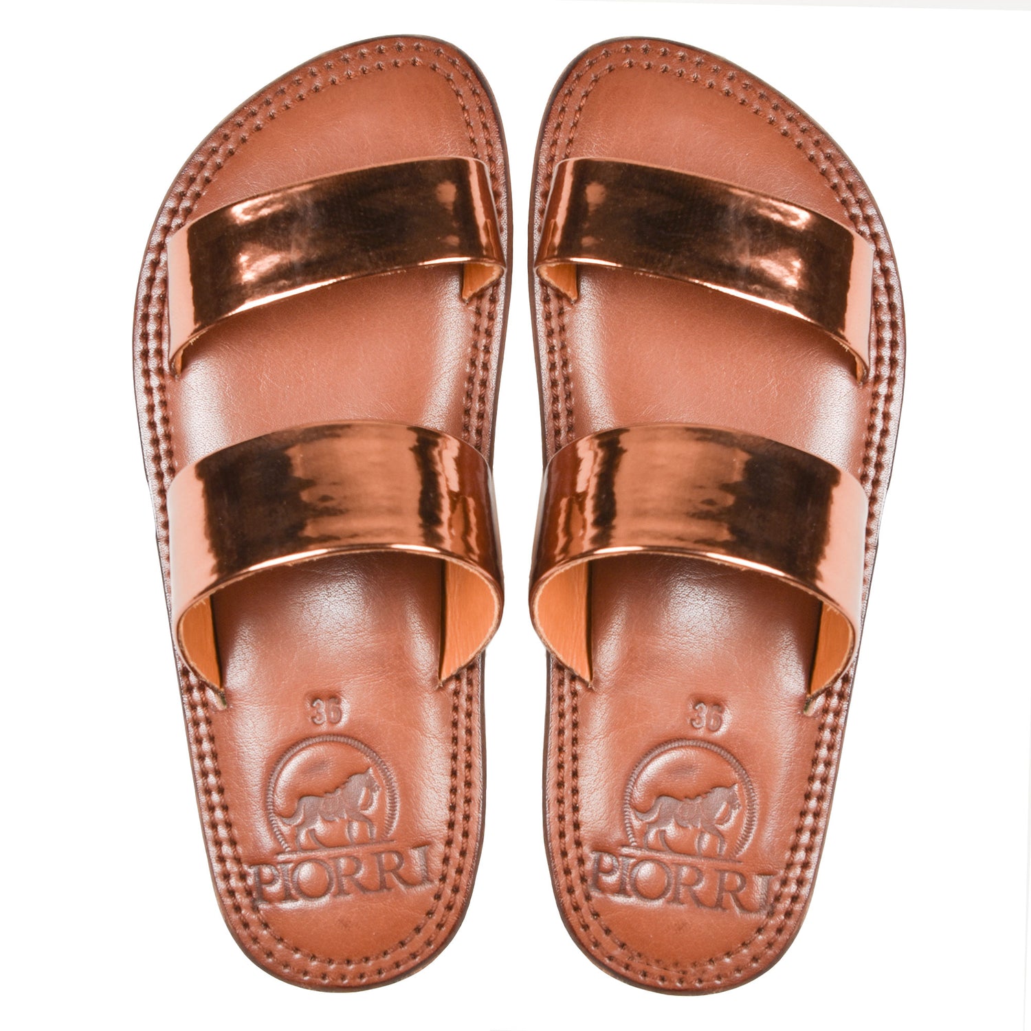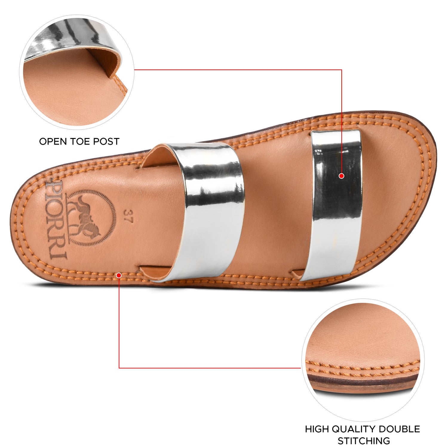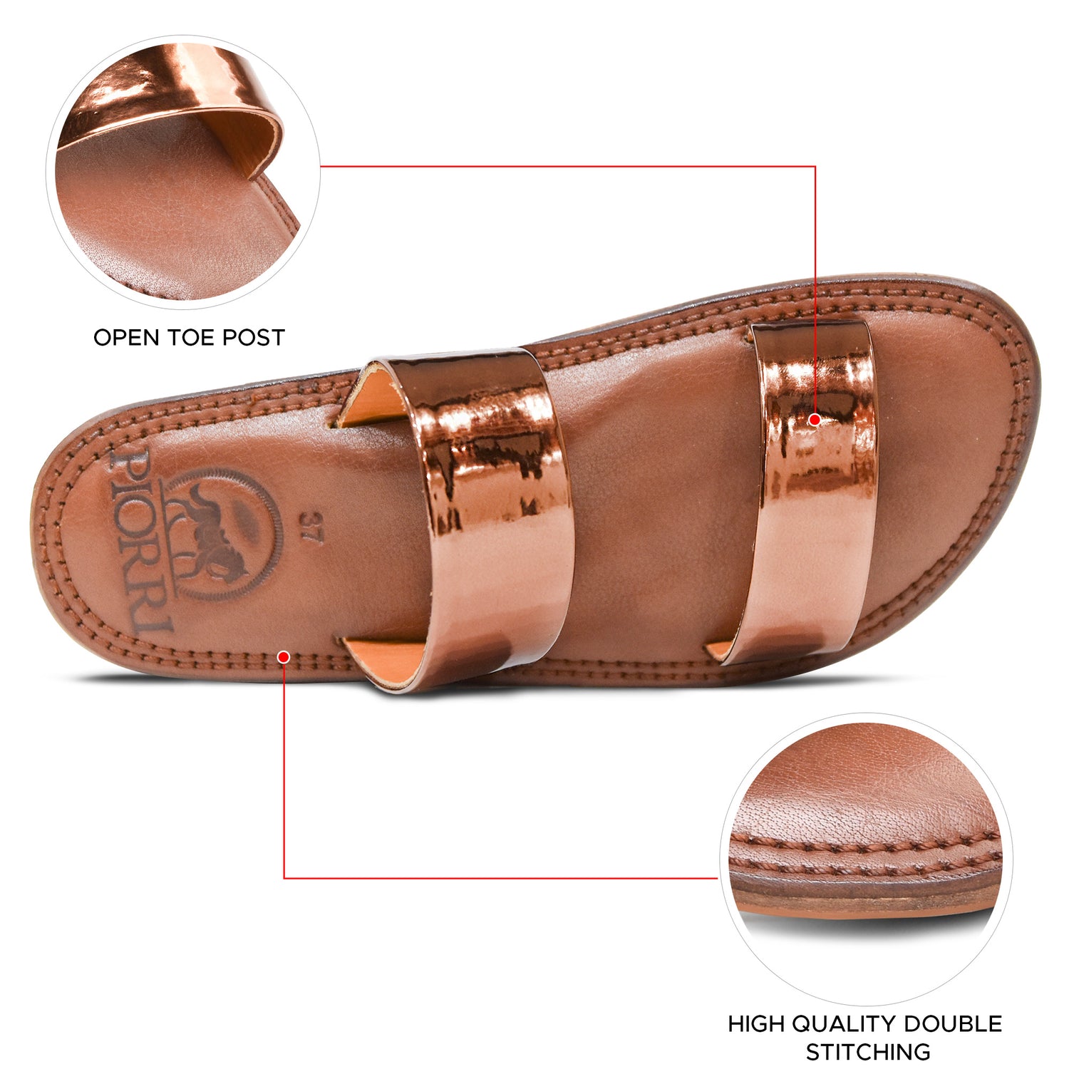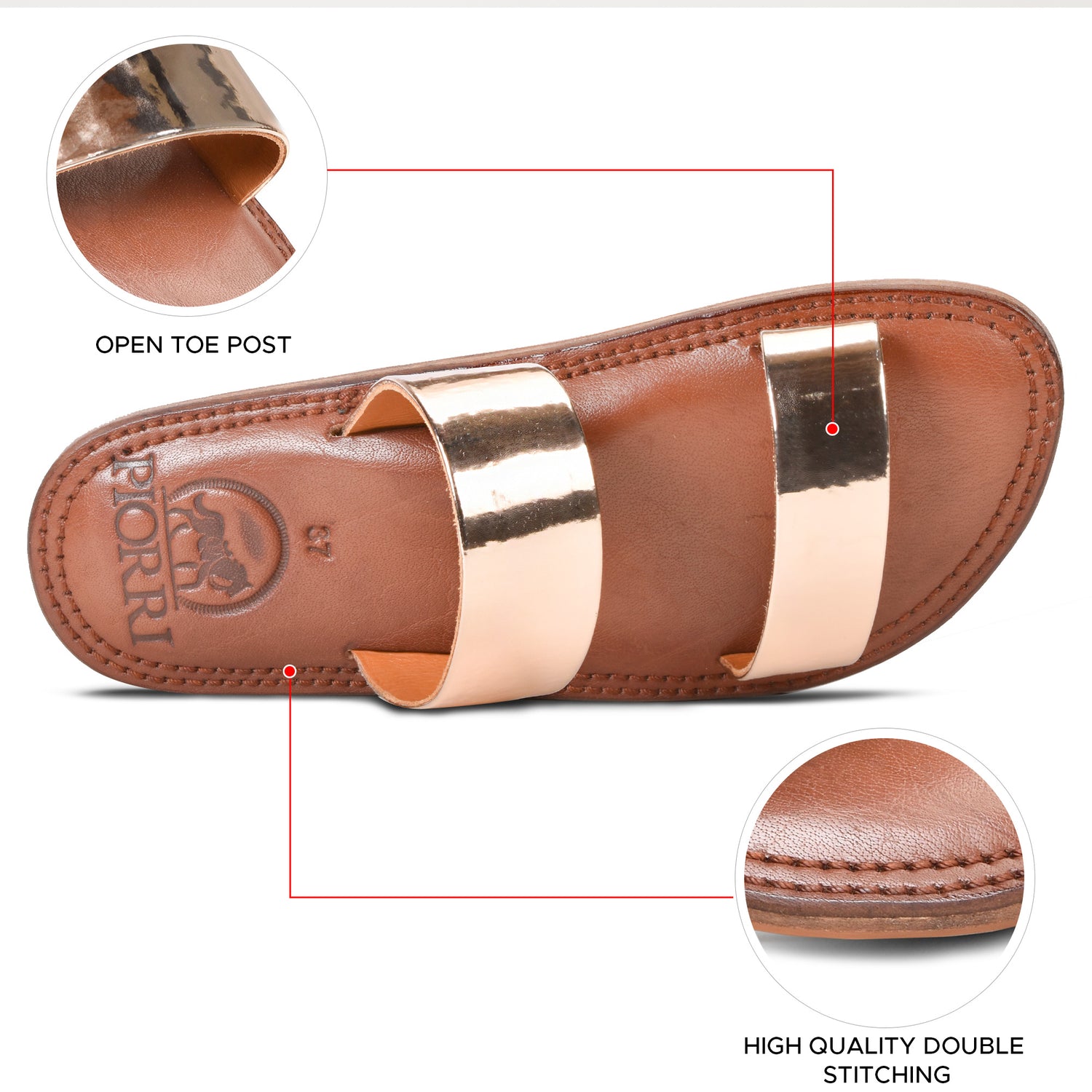 PIORRI by Aerothotic - Selene Women’s Flat Natural Leather Comfortable Slide Sandals - LK2109