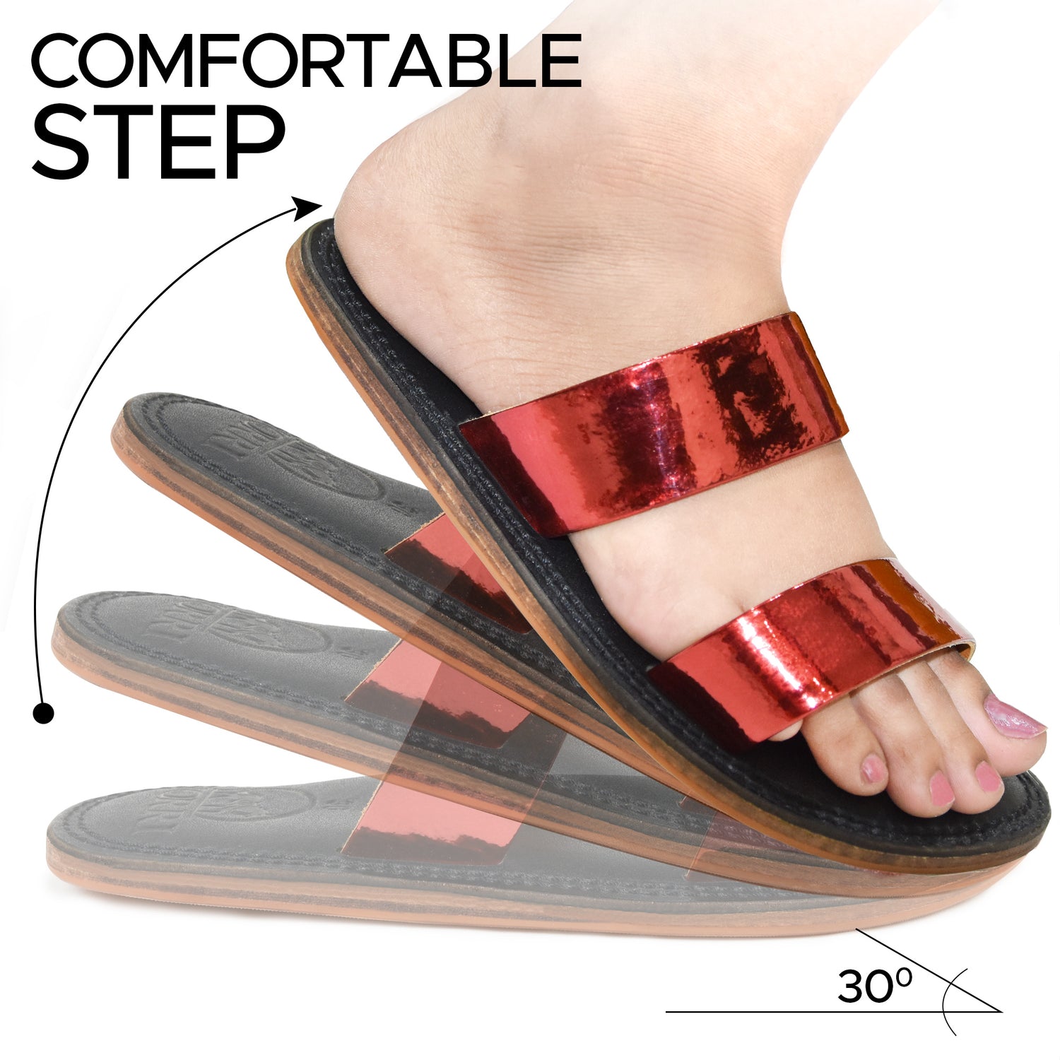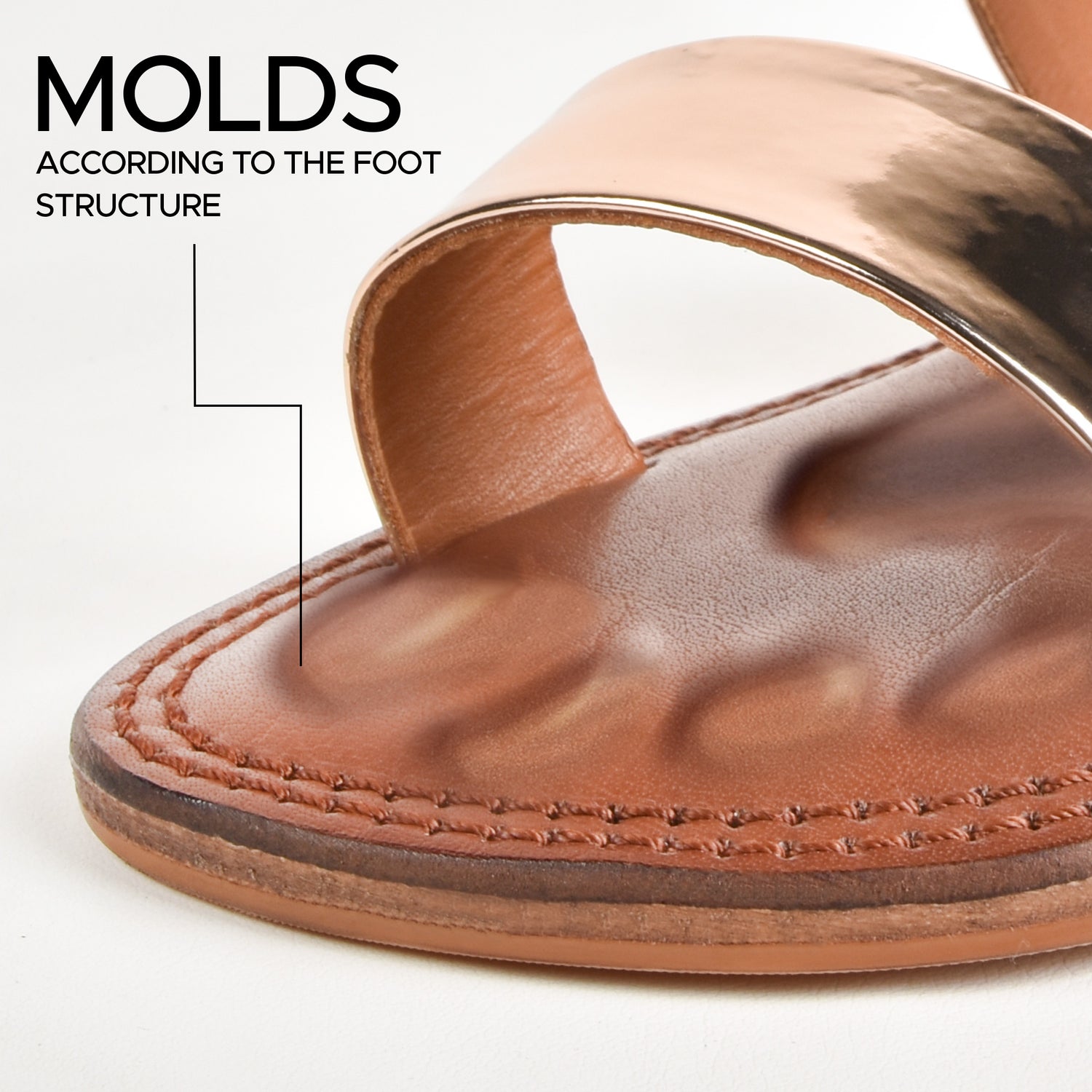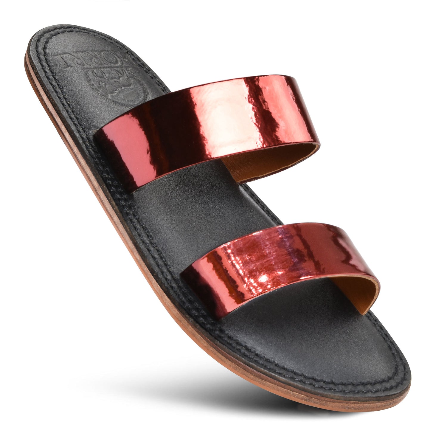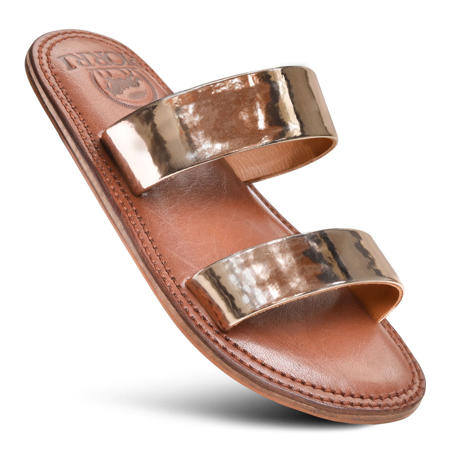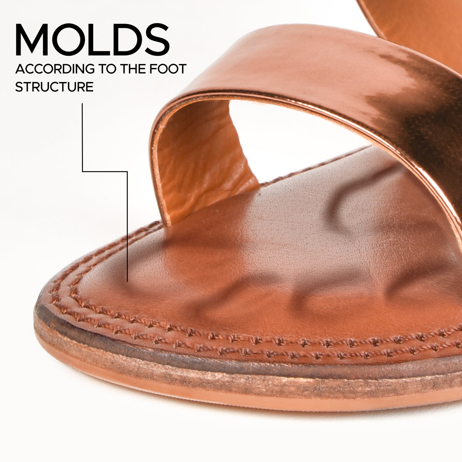 When it comes to slides, these ought to be the elegant and most refreshing option to style. Our double strap handmade natural leather sandals for women are easy-to-wear and the best to lean into the current fashion trends. The built-in arch support women slides molds as your foot shape and ensure a proper posture and comfortable walking experience. The sheen strap slides for women will add a statement to your persona with a little extra space to shine.