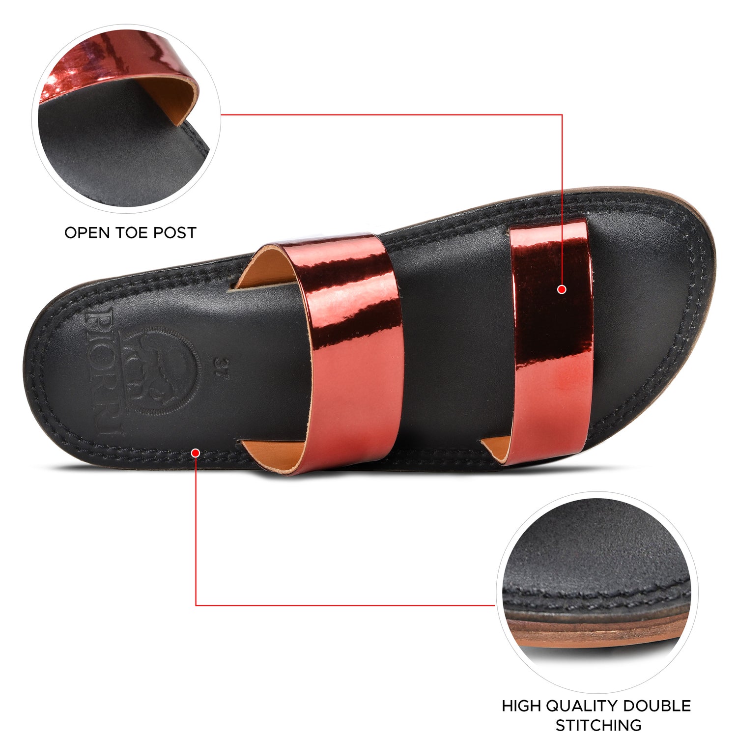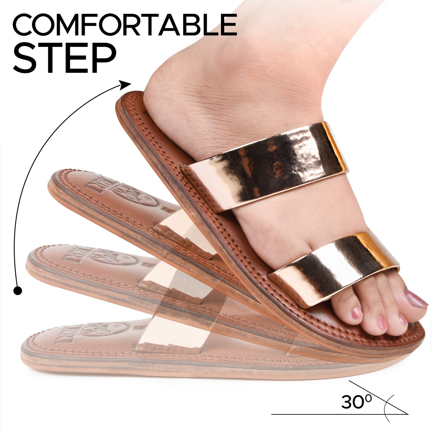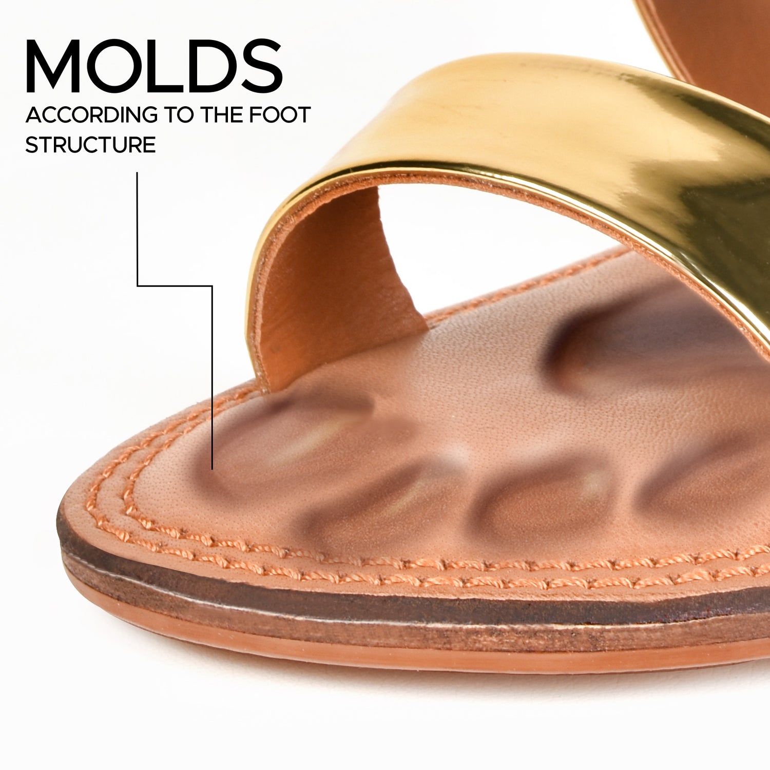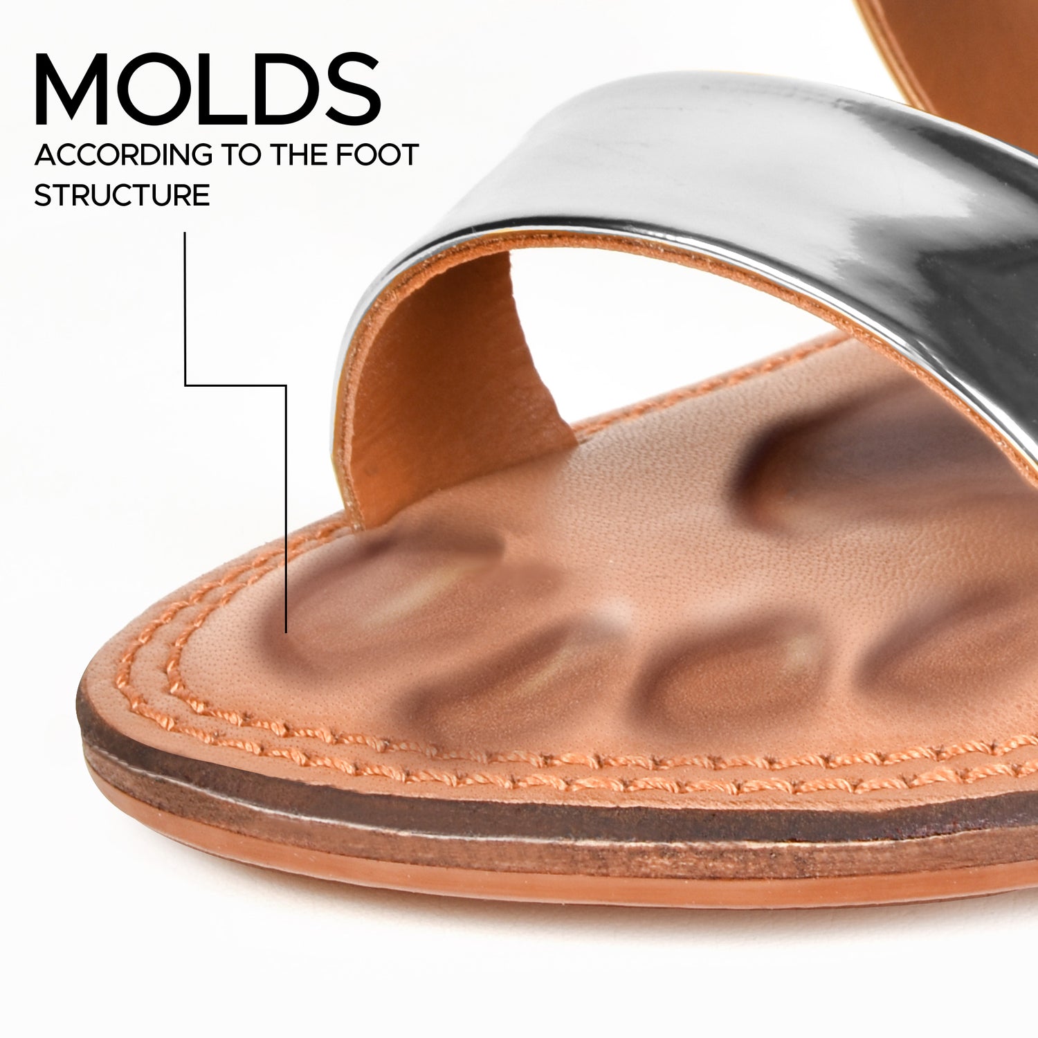 When it comes to slides, these ought to be the elegant and most refreshing option to style. Our double strap handmade natural leather sandals for women are easy-to-wear and the best to lean into the current fashion trends. The built-in arch support women slides molds as your foot shape and ensure a proper posture and comfortable walking experience. The sheen strap slides for women will add a statement to your persona with a little extra space to shine.